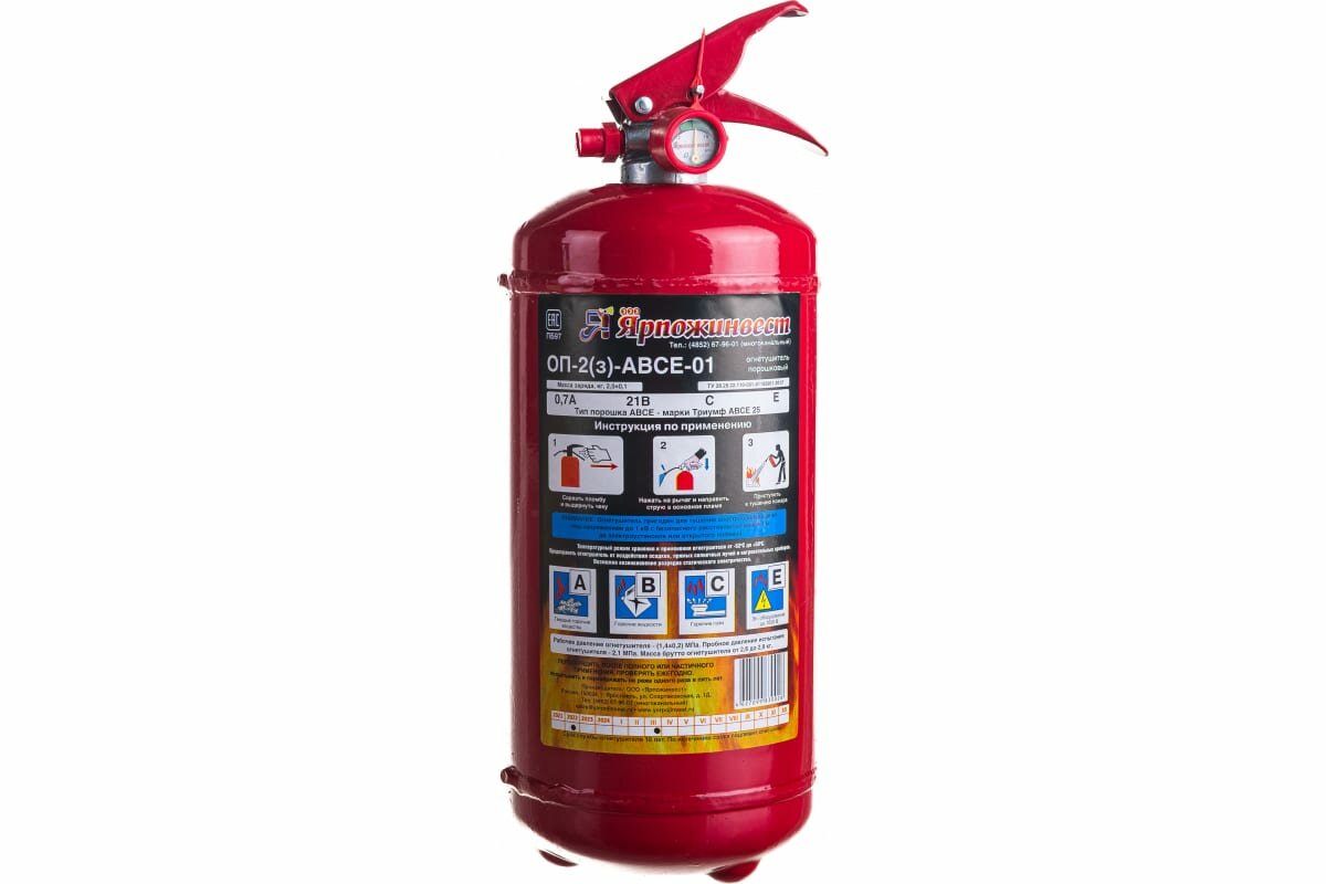 Огнетушитель ОП-2(з)-ABCE (закачной) порошковый 2кг (с манометром) ярпожинвест ABCE Россия /1/6 информация: