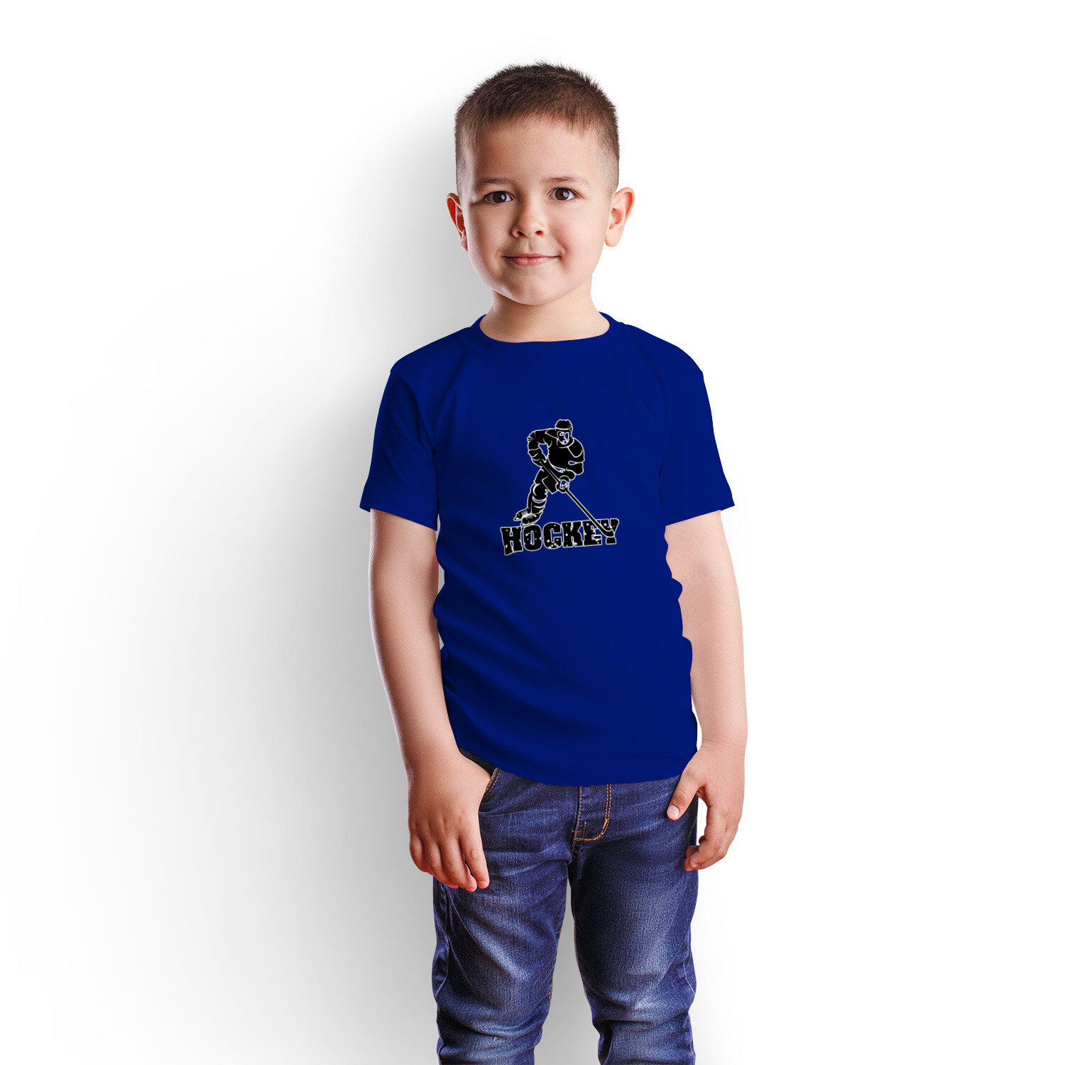 Детская футболка «hockey, хоккей, спорт, лед, шайба, клюшка» (152, синий) информация: