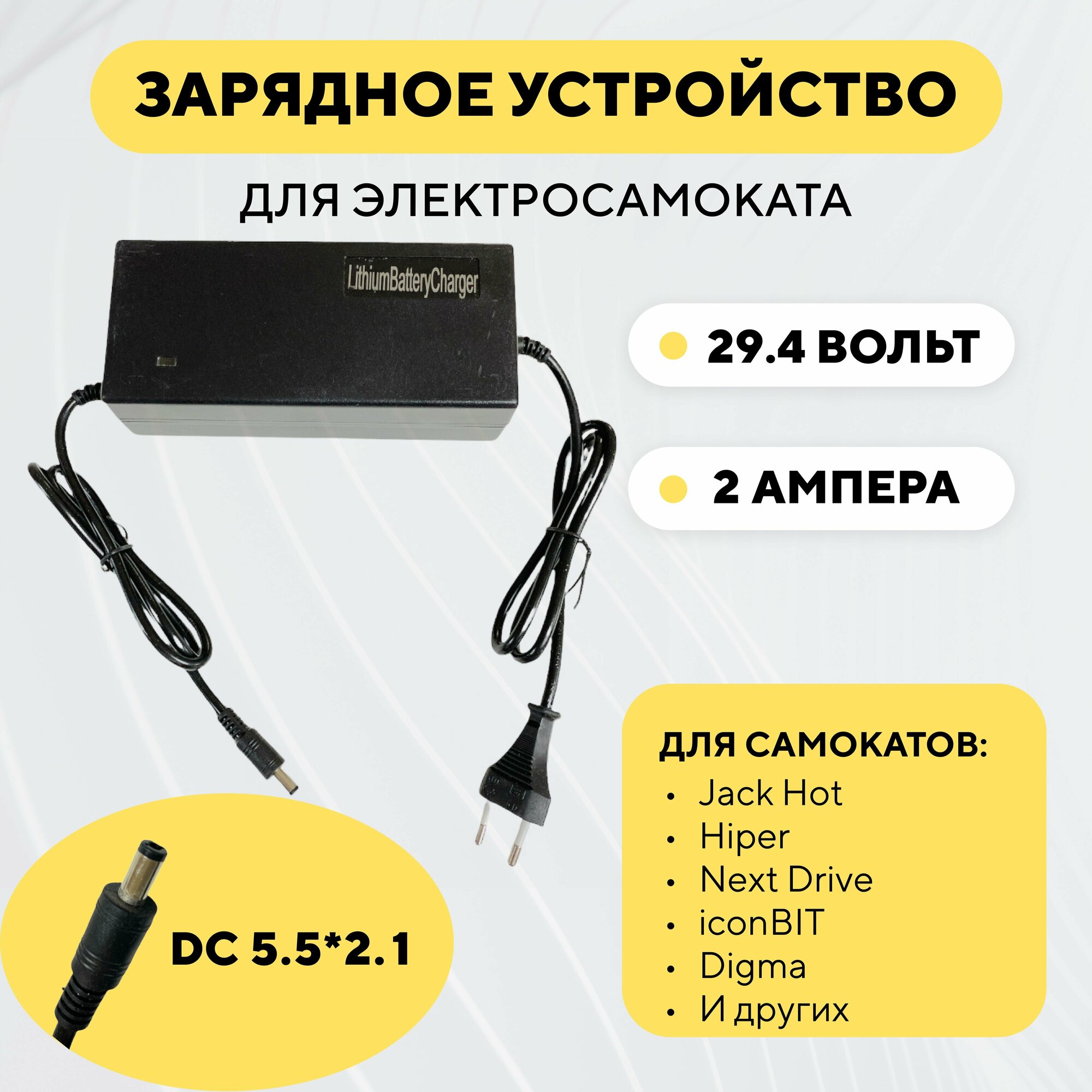 Зарядное устройство для электросамоката Jack Hot/Hiper/Next Drive/iconBIT (24V 2A) информация: