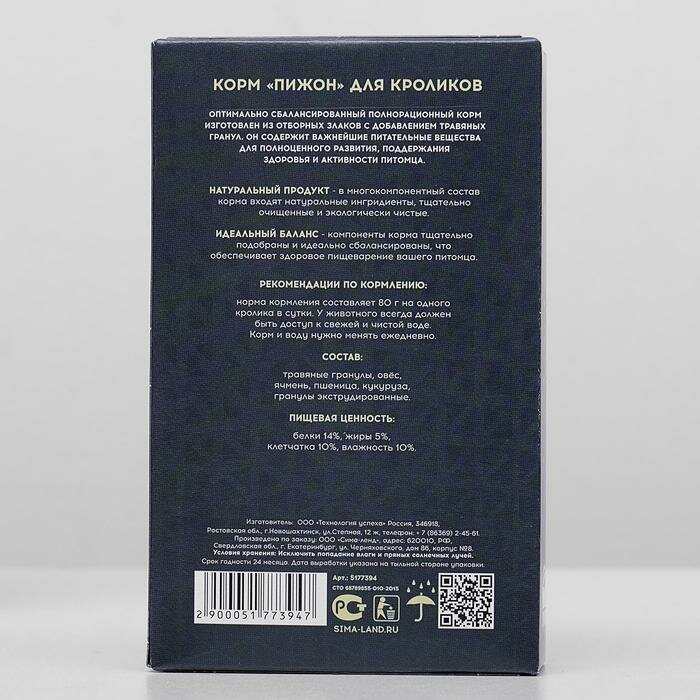 Корм "Пижон" для кроликов, 400 г информация:
