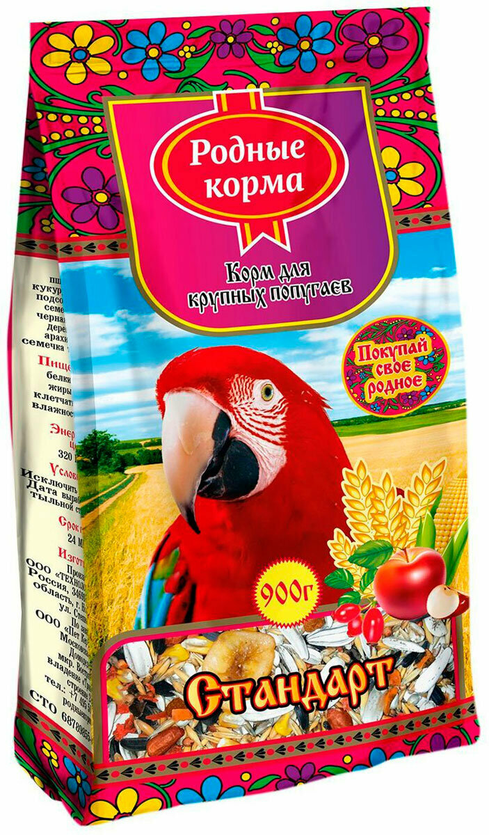 Родные корма корм для крупных попугаев стандарт (900 гр х 2 шт) информация: