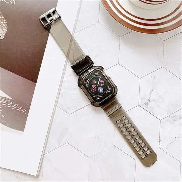Силиконовый ремешок для смарт-часов Apple Watch 42, 44, 45mm / Защитный чехол на Эпл Вотч / черныйПрозрачный информация: