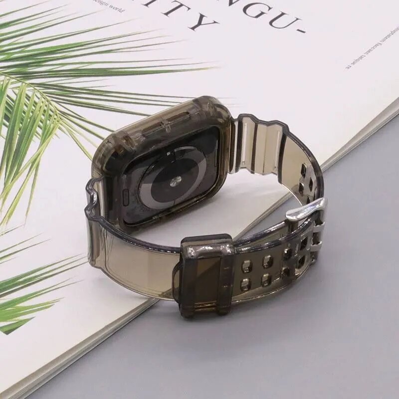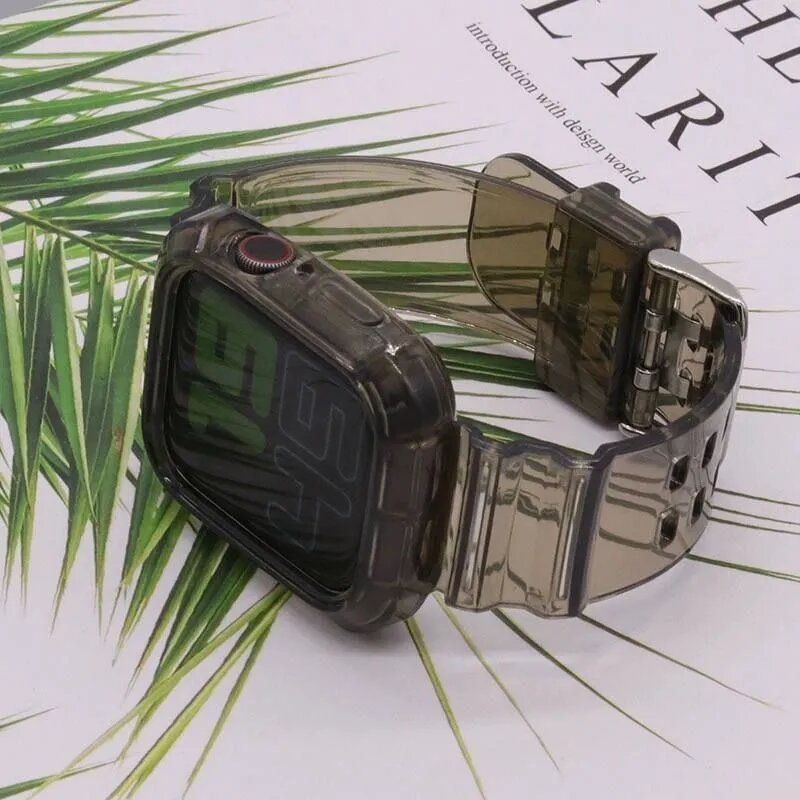 Силиконовый ремешок для смарт-часов Apple Watch 42/44/41/45 mm/ Защитный чехол на Эпл Вотч / Прозрачный 649 ₽