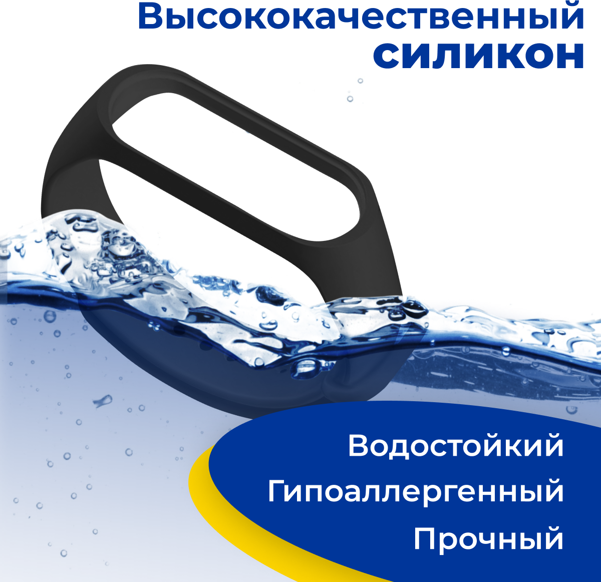 Силиконовый ремешок на фитнес-трекер Xiaomi Mi Band 5, 6 и 7 / Спортивный сменный браслет для смарт часов Сяоми Ми Бэнд 5, 6 и 7 / Cosmos Black 323 ₽