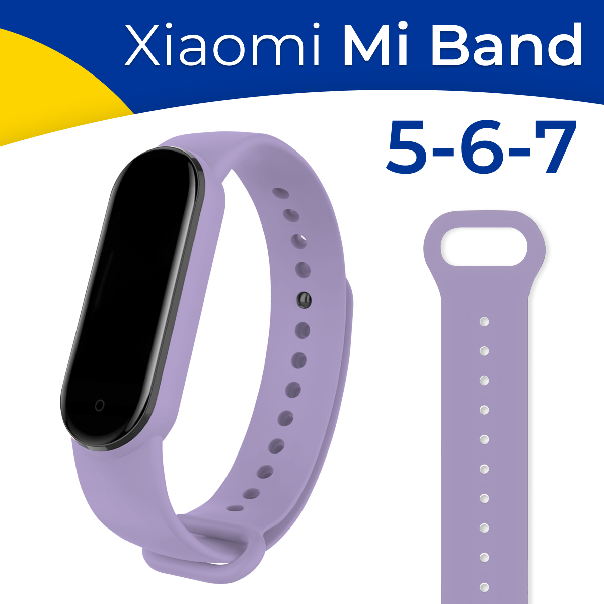 Силиконовый ремешок на фитнес-трекер Xiaomi Mi Band 5, 6 и 7 / Спортивный сменный браслет для смарт часов Сяоми Ми Бэнд 5, 6 и 7 / Лавандовый информация: