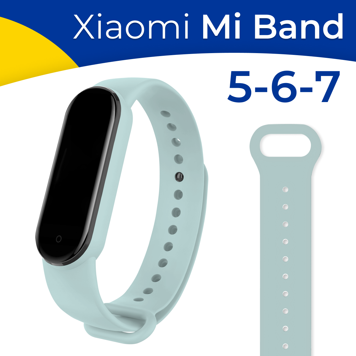 Силиконовый ремешок на фитнес-трекер Xiaomi Mi Band 5, 6 и 7 / Спортивный сменный браслет для смарт часов Сяоми Ми Бэнд 5, 6 и 7 / Светло-голубой информация: