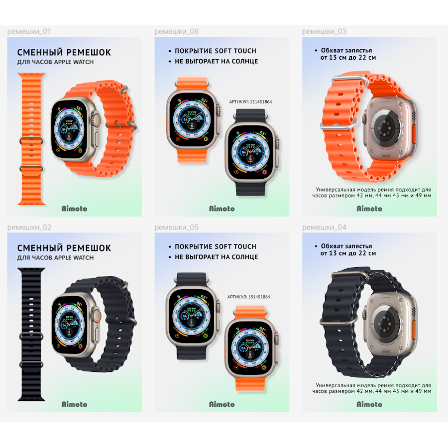 | Дополнительная информация | Универсальная модель ремня подходит для часов размером 42 мм, 44 мм 45 мм и 49 мм. |