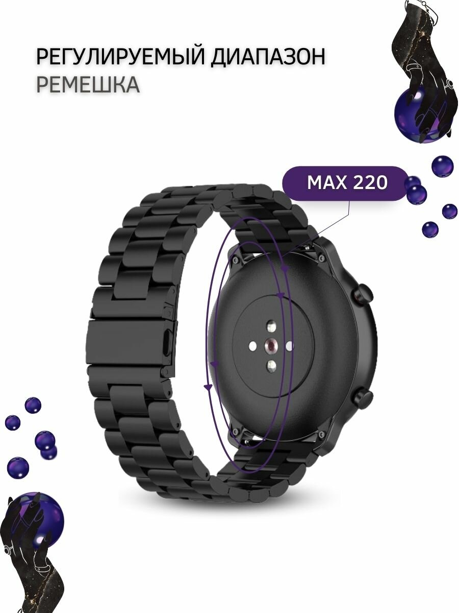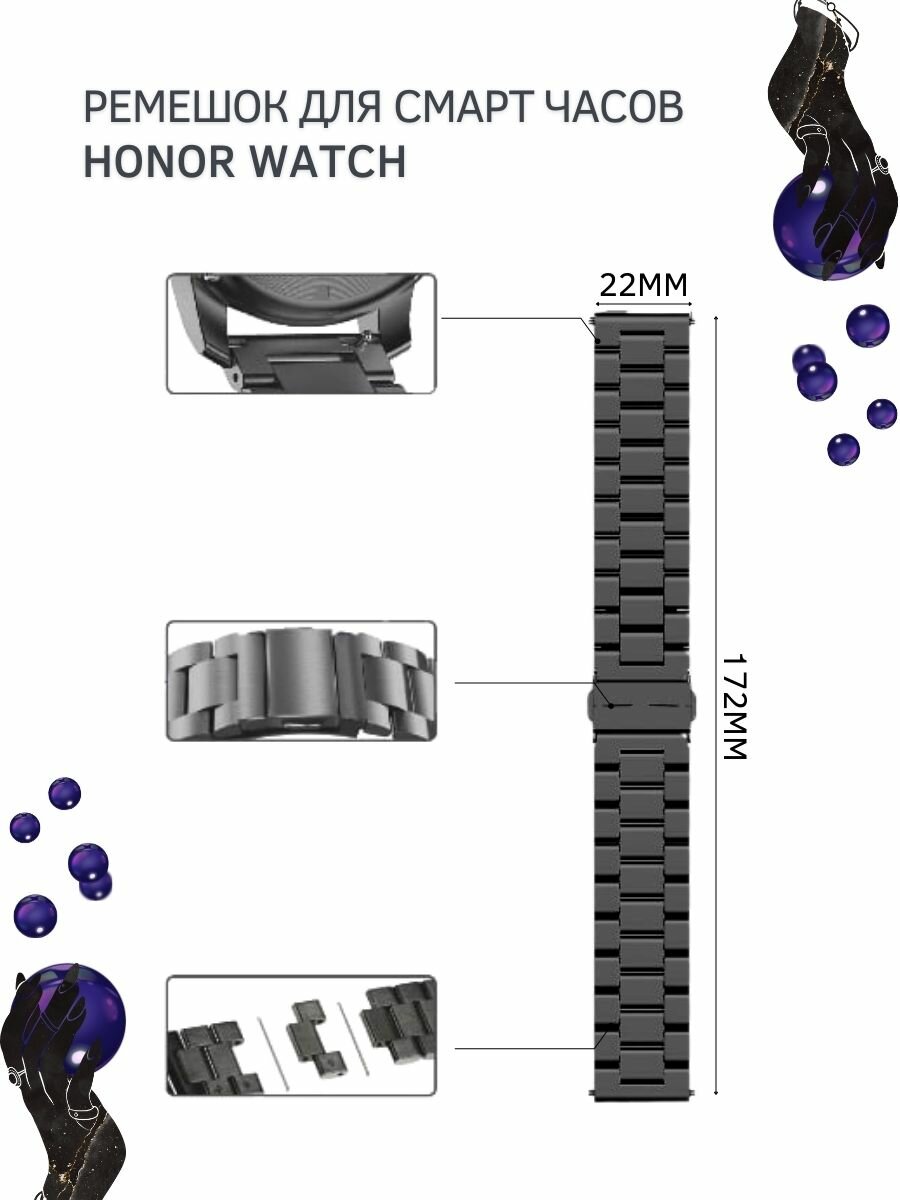 Ремешок для часов Honor, для часов Хонор, металлический, шириной 22 мм, черный информация: