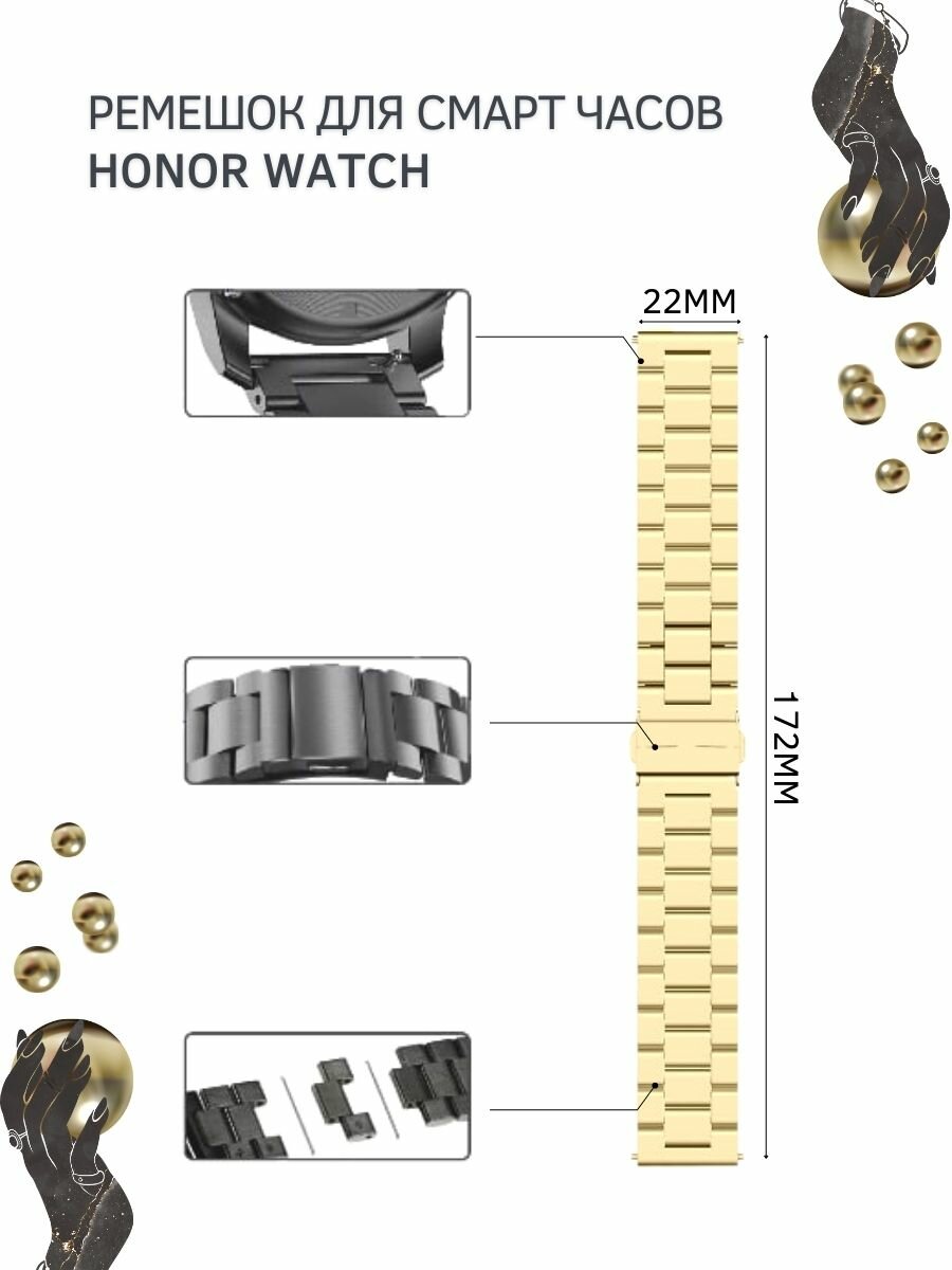 Ремешок для часов Honor, для часов Хонор, металлический, шириной 22 мм, золотистый информация: