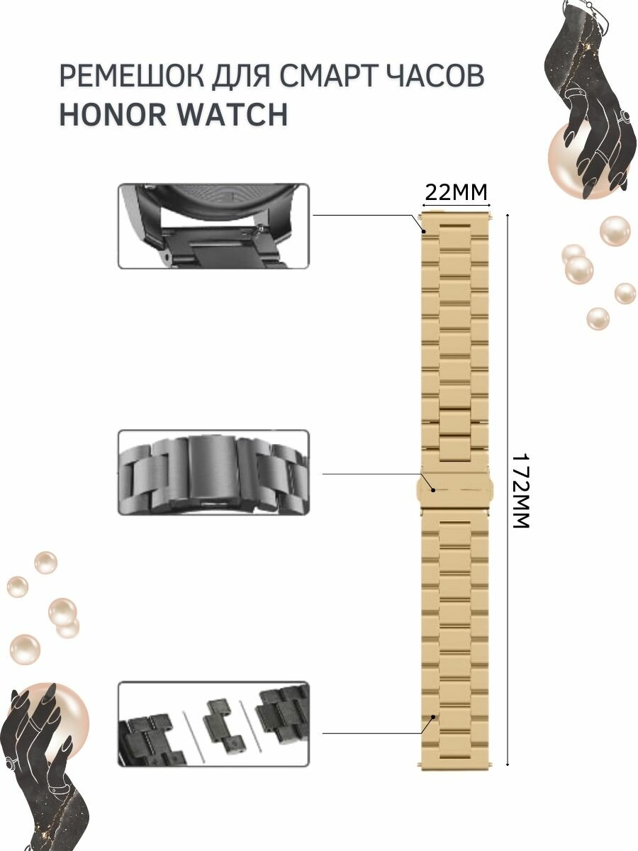 Ремешок для часов Honor, для часов Хонор, металлический, шириной 22 мм, золотистый 1 170 ₽