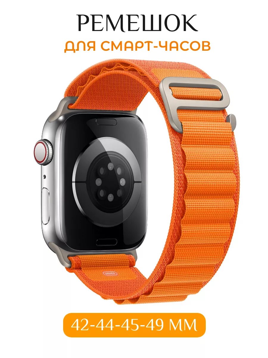 Отзывы на Ремешок для смарт-часов X8+ Ultra / X8 Ultra / X8 Pro+ / X8 Pro / Apple Watch, Alpine Loop, тканевый оранжевый, 42-49mm