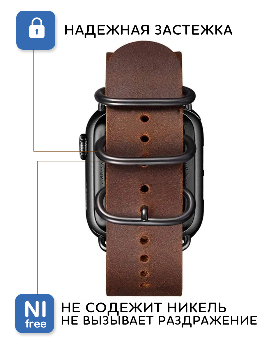 Отзывы на Кожаный ремешок для Apple Watch 42-44-45 мм, браслет из натуральной кожи для часов Apple Watch series 1-7 SE, коричневый (DarkBrown3)