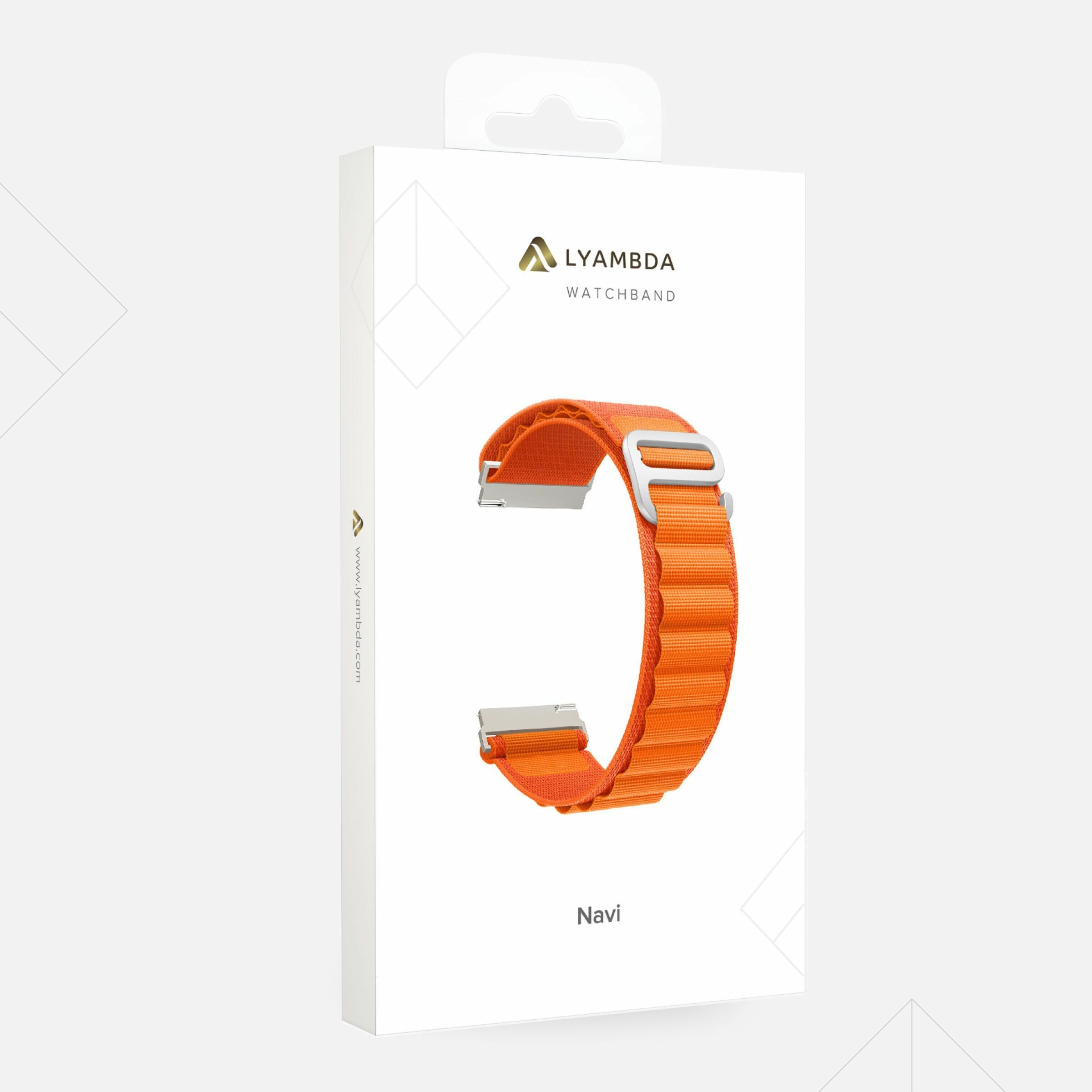 Универсальный петлевой нейлоновый ремешок для часов 20 mm LYAMBDA NAVI DSN-19-20-OR для часов Garmin, Samsung, Huawei, LG, Rolex, Honor, оранжевый