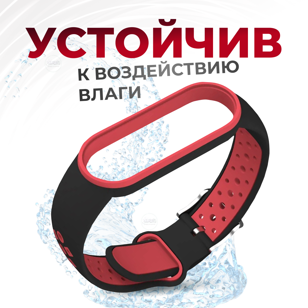 Ремешок для Xiaomi Mi Band 5,6,7/Браслет для смарт-часов/фитнес-браслет/Спортивный сменный силиконовый ремешок/ Черный-красный информация: