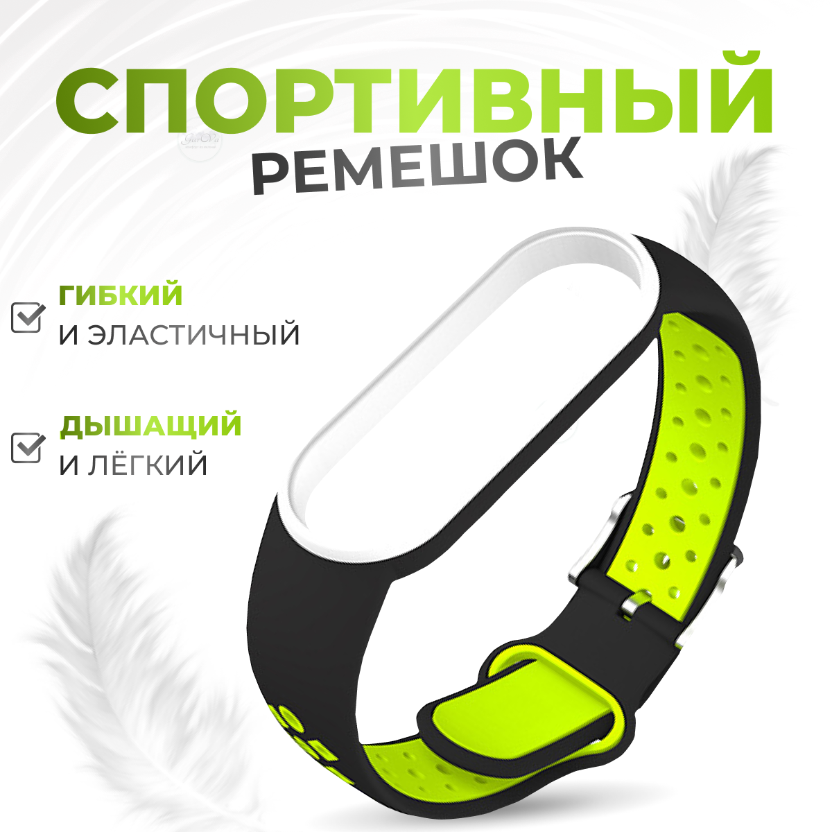 Отзывы на Силиконовый ремешок для смарт часов Xiaomi Mi Band 5,6,7 / браслет на фитнес трекер/ Черный-лайм