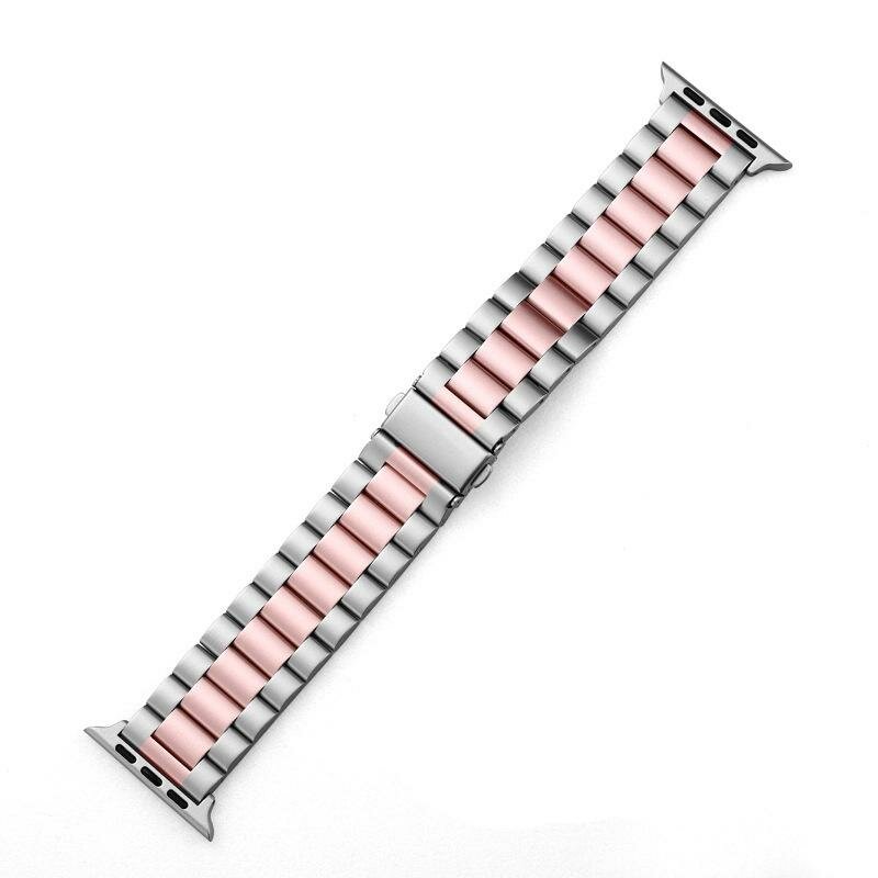 10 цен на Ремешок металлический из нержавеющей стали для умных смарт часов Apple Watch 42/44/45/49 mm series 1-9 , блочный, Серебристый-розовый
