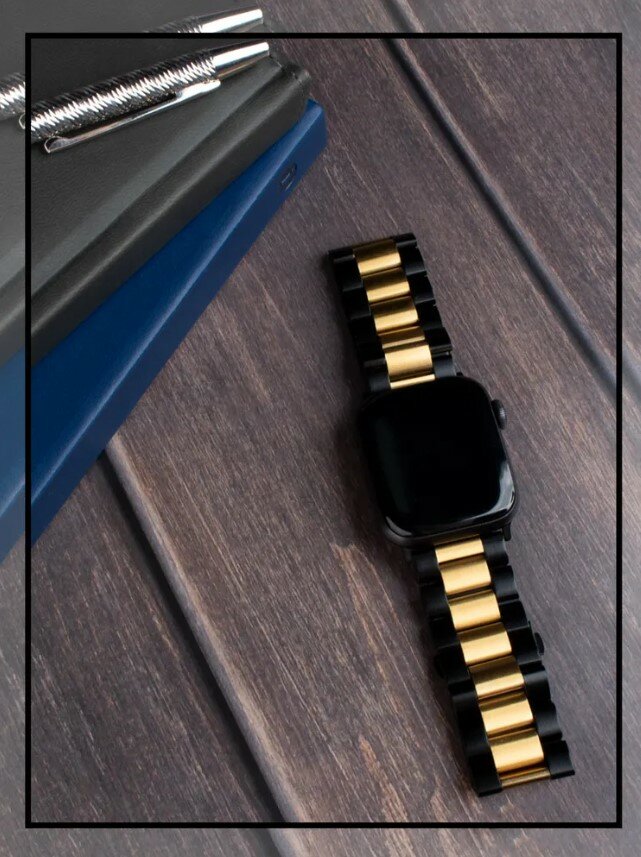 Металлический блочный ремешок золотой-черный для Apple Watch 1-9, SE, ULTRA 42-44-45-49 мм 1 431 ₽