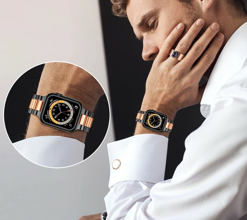 Отзывы на Металлический блочный ремешок для Apple Watch 1-9, SE, ULTRA 42-44-45-49 мм,черный-бронзовый