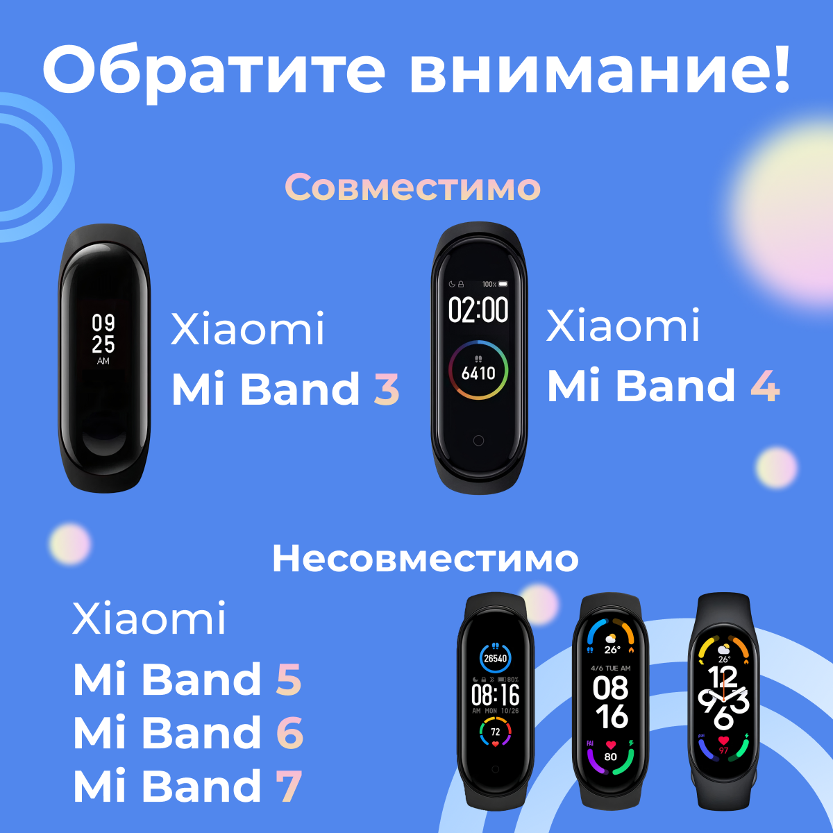 | Совместимые модели умных часов | Xiaomi Mi Band 3, Xiaomi Mi Band 4 |