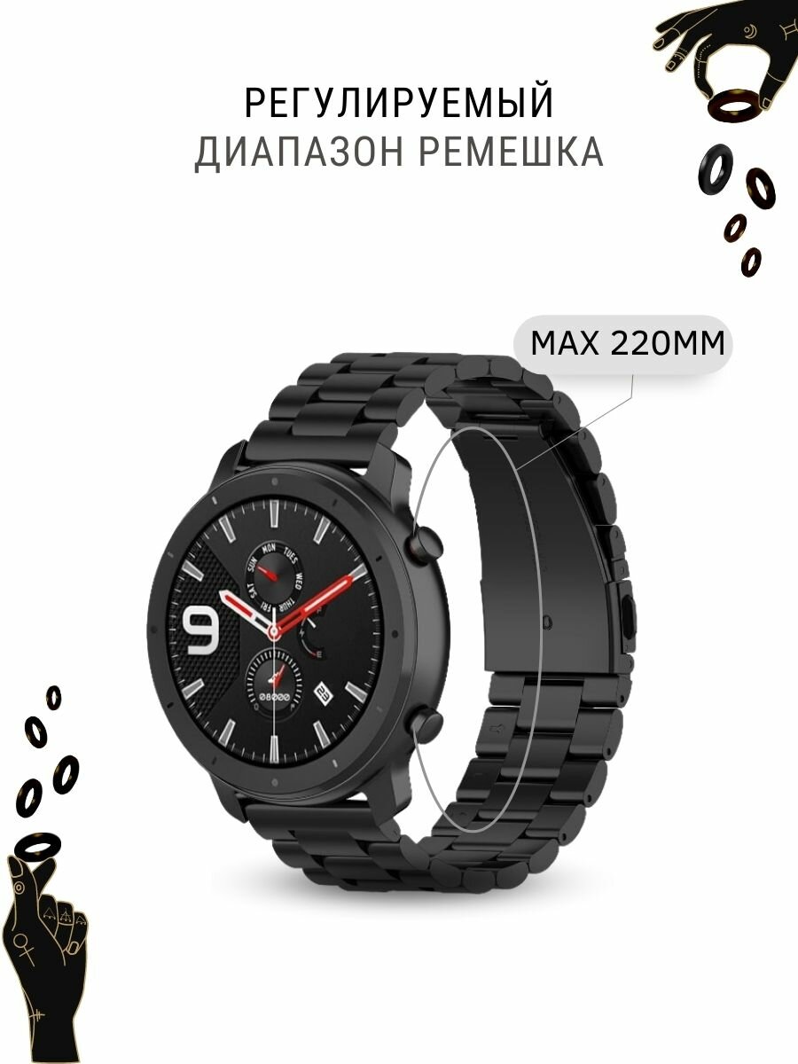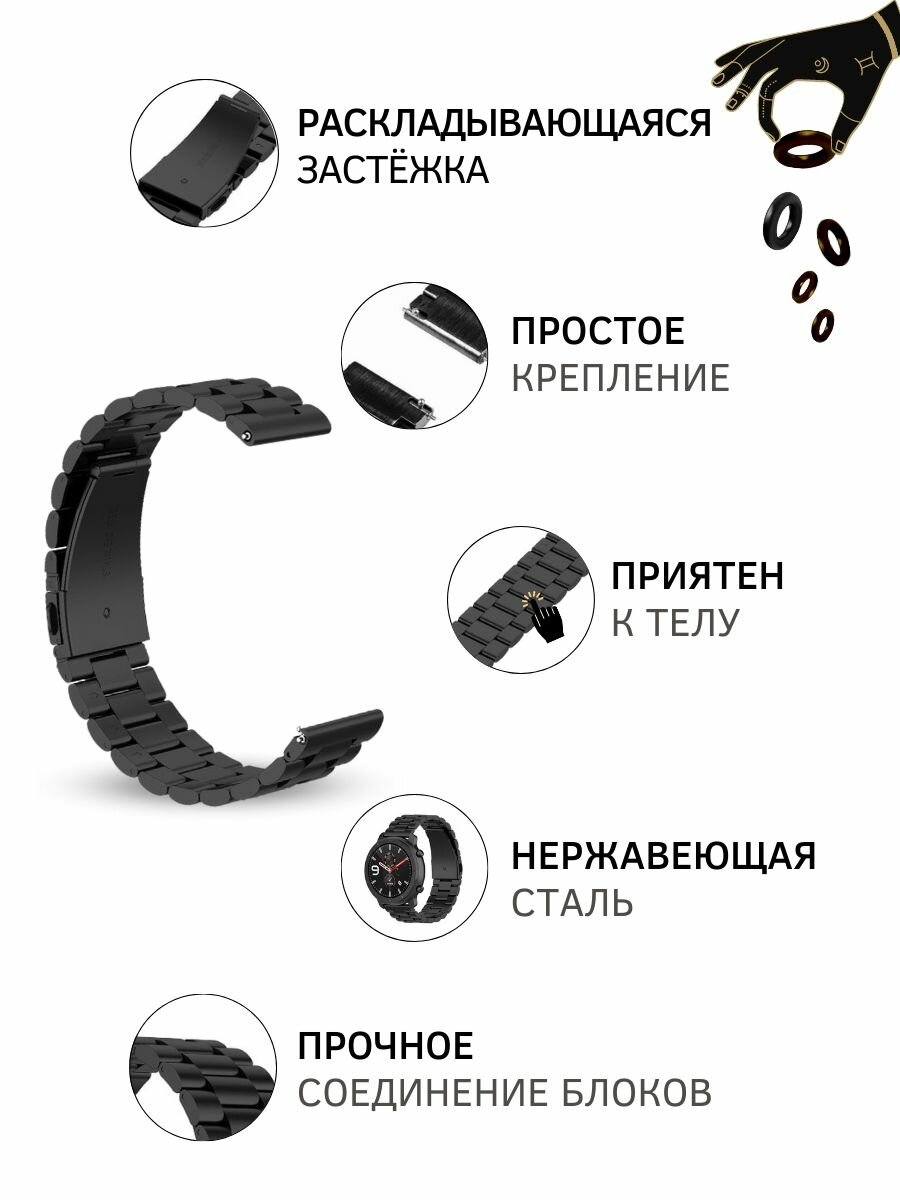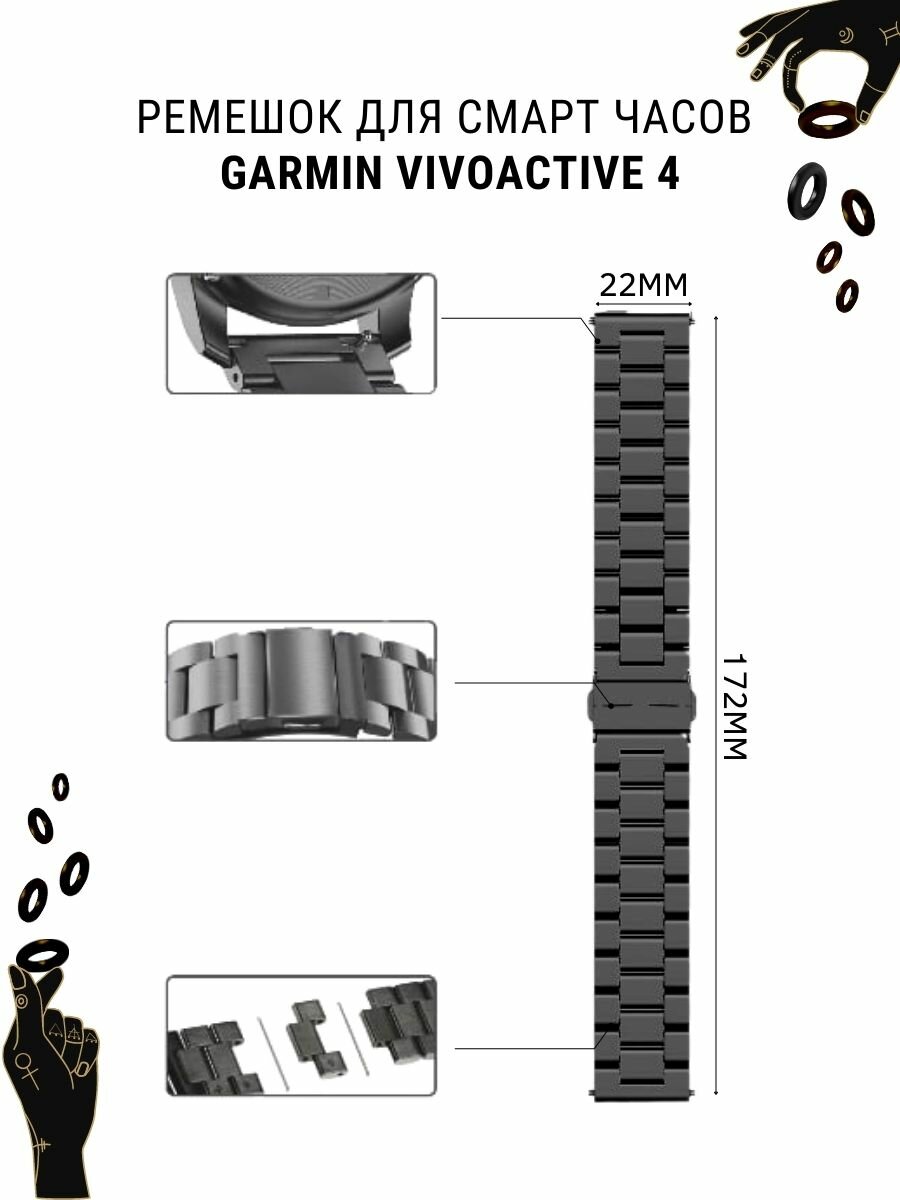 Ремешок для часов Garmin, металлический, шириной 22 мм, черный информация: