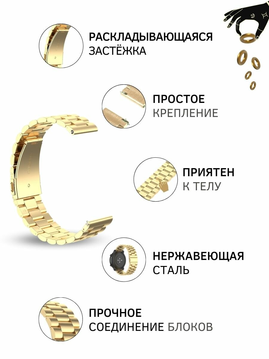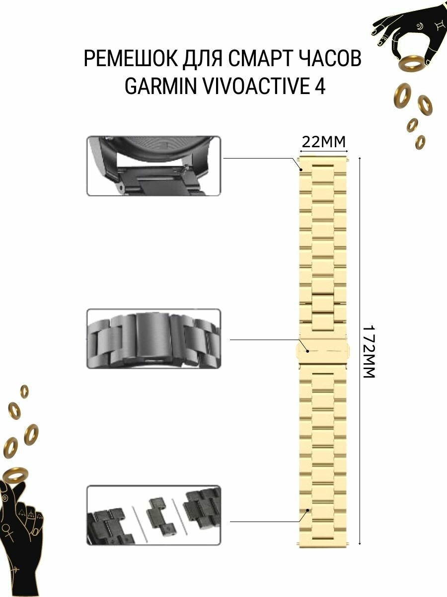 Ремешок для часов Garmin, металлический, шириной 22 мм, золотистый информация: