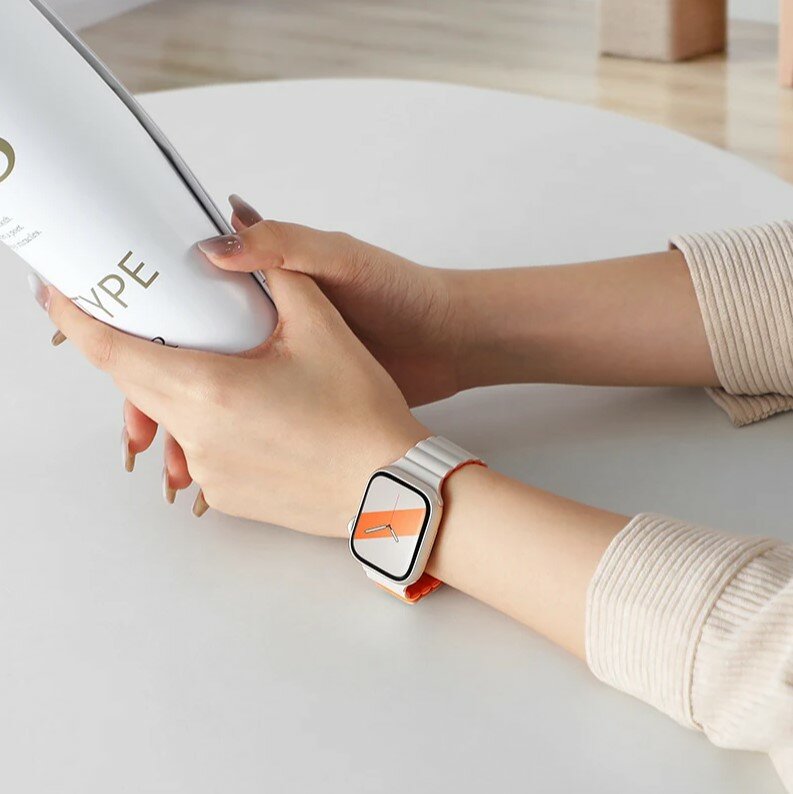 Отзывы на Магнитный спортивный силиконовый ремешок для умных смарт часов Apple Watch 38/40/41mm series 1-9 ,белый-оранжевый