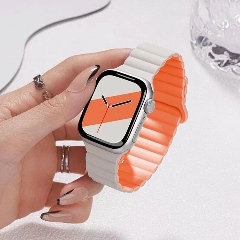 10 цен на Магнитный спортивный силиконовый ремешок для умных смарт часов Apple Watch 38/40/41mm series 1-9 ,белый-оранжевый