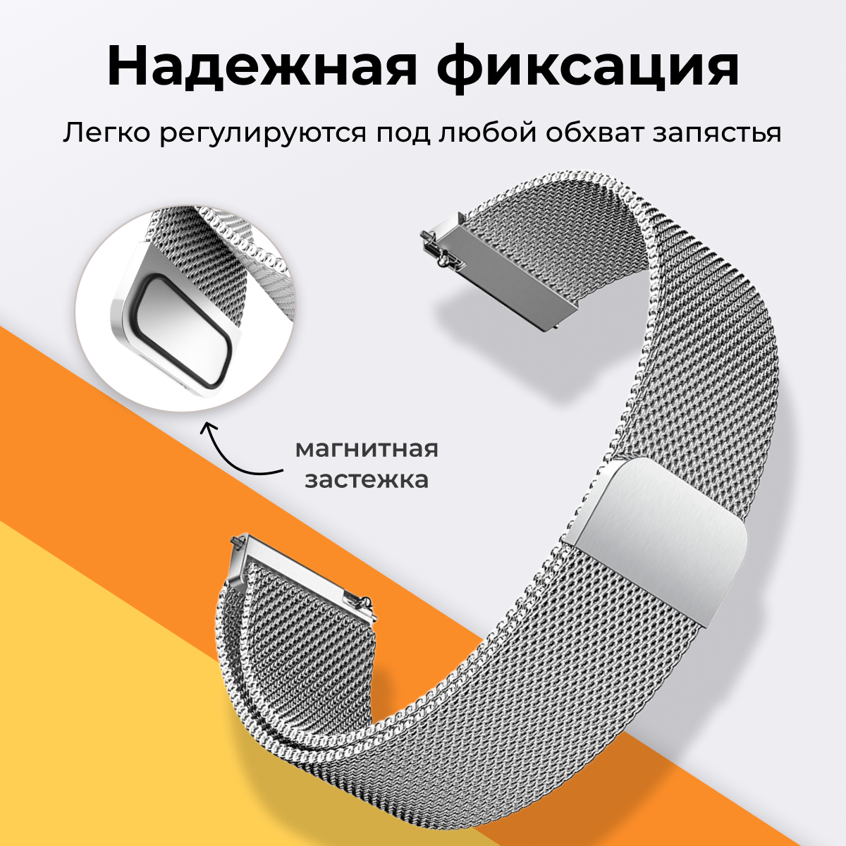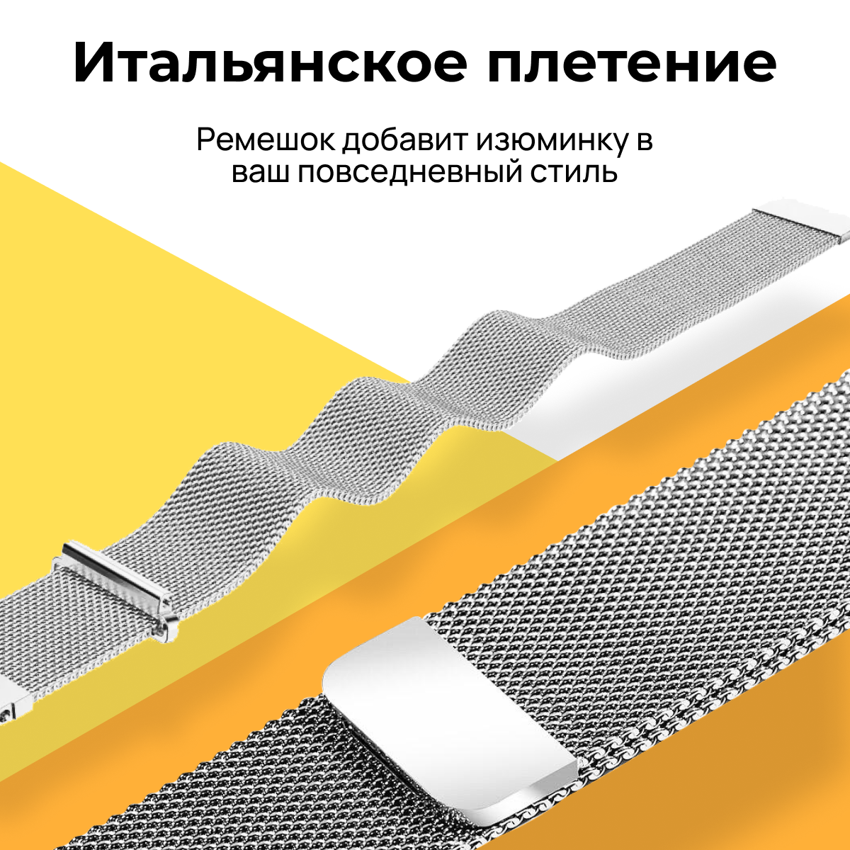Металлический ремешок для Samsung Galaxy Watch, Gear Sport, Huawei Watch, Honor, Amazfit, Garmin миланская петля / Браслет для часов 20 мм / Серебро 489 ₽