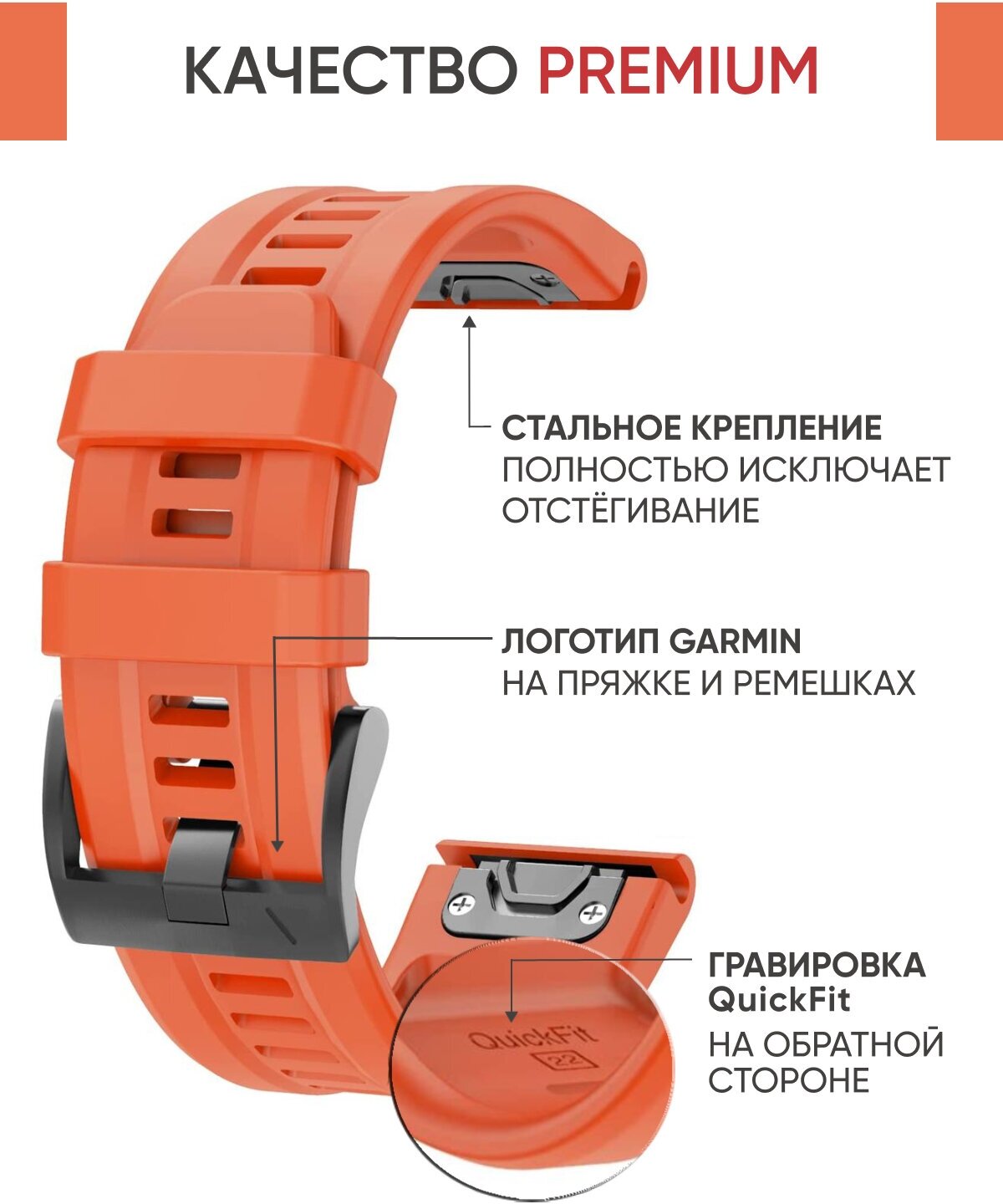 Отзывы на Силиконовый ремешок на часы Garmin Fenix 7, 6, 5 / Epix / Instinct / Garmin Forerunner 945, 935, 745, быстросъемный QuickFit 22 мм с гравировкой оранжевый