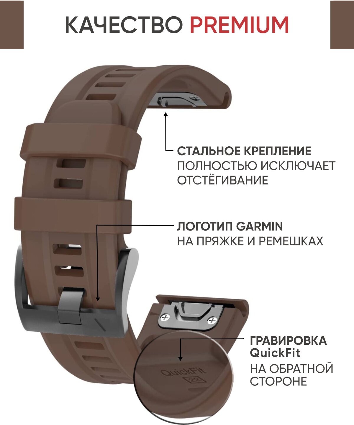 Силиконовый ремешок 22 мм на часы Garmin Fenix 7, 6, 5 / Epix / Instinct / Garmin Forerunner 945, 935, 745, быстросъемный QuickFit с гравировкой коричневый информация: