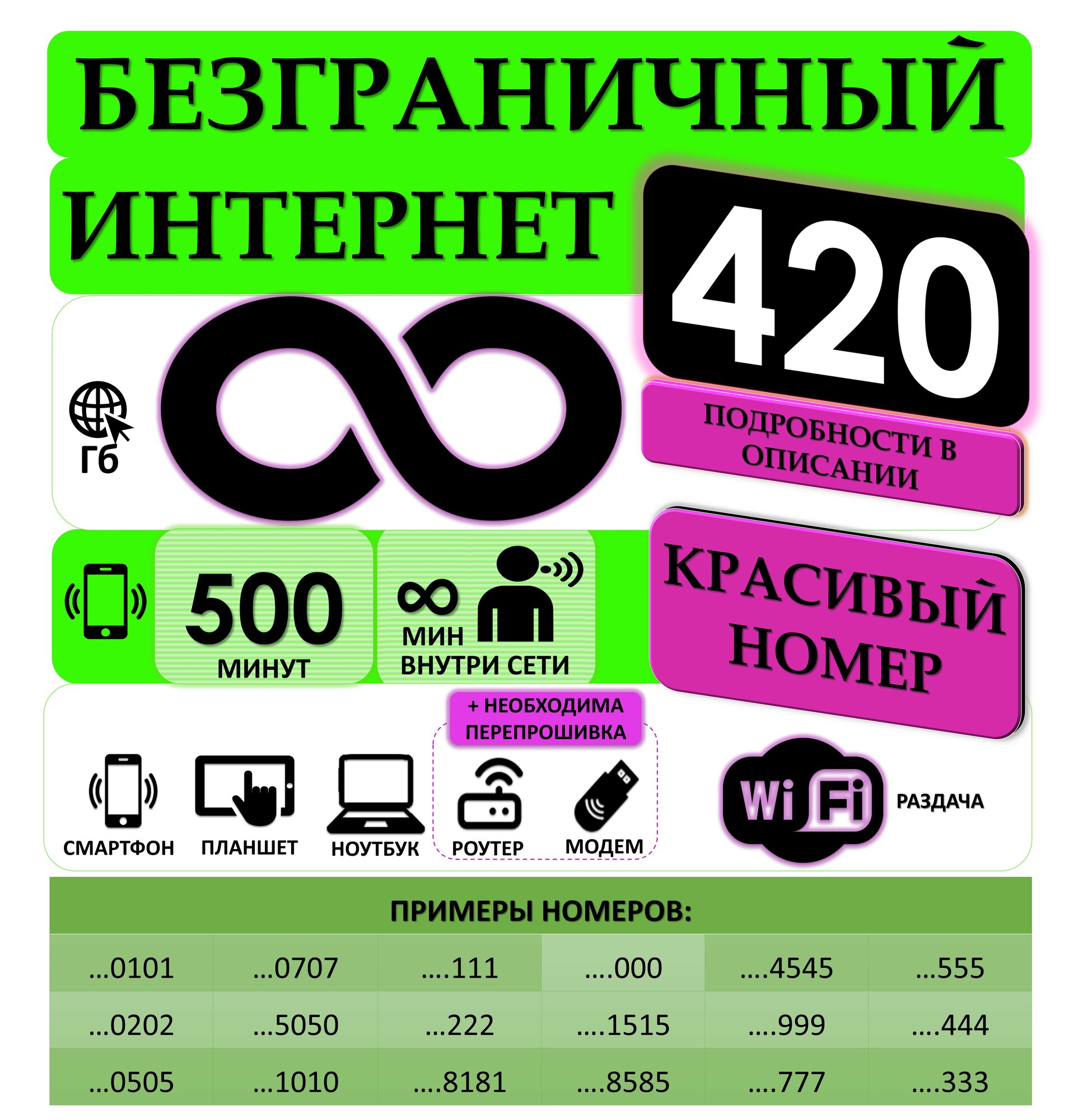 Сим-карта с Раздачей Безлимитного интернета и Красивым номером за 670 рублей в месяц, списывается посуточно. информация: