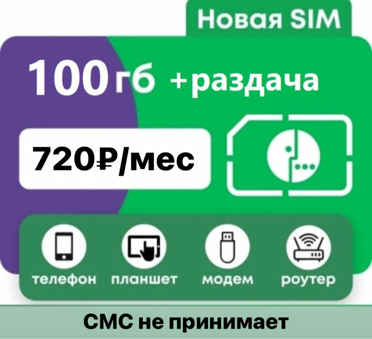 Сим карта c интернетом и раздачей, 50ГБ за 450р/мес