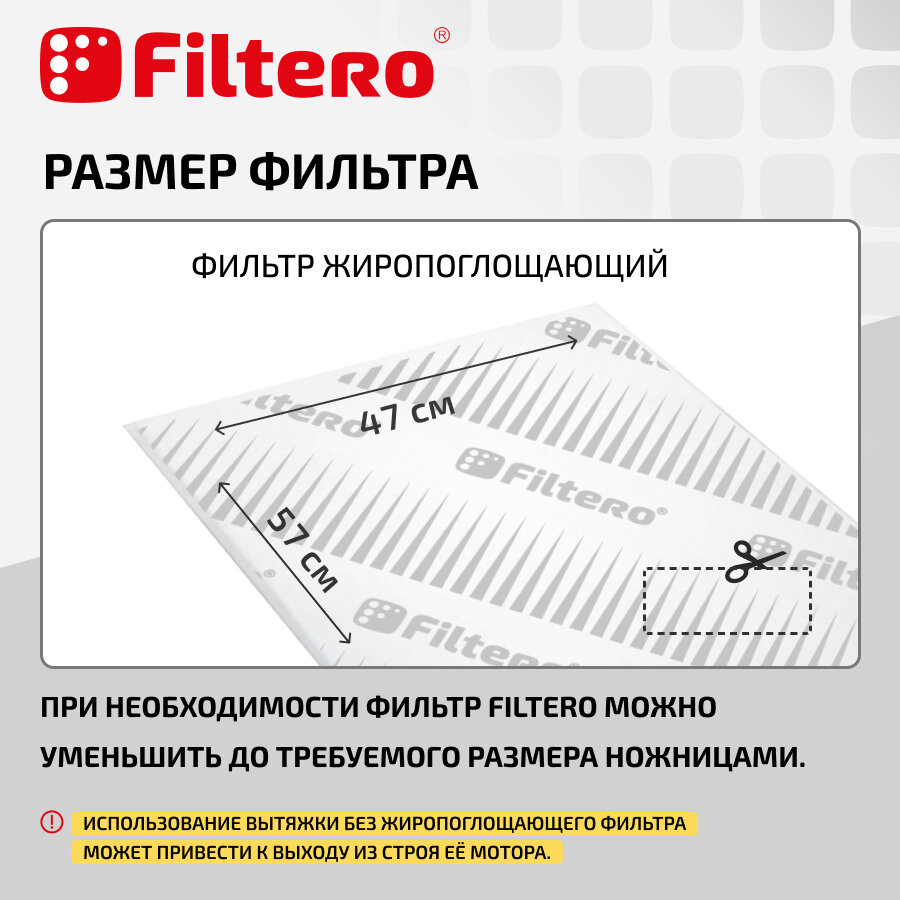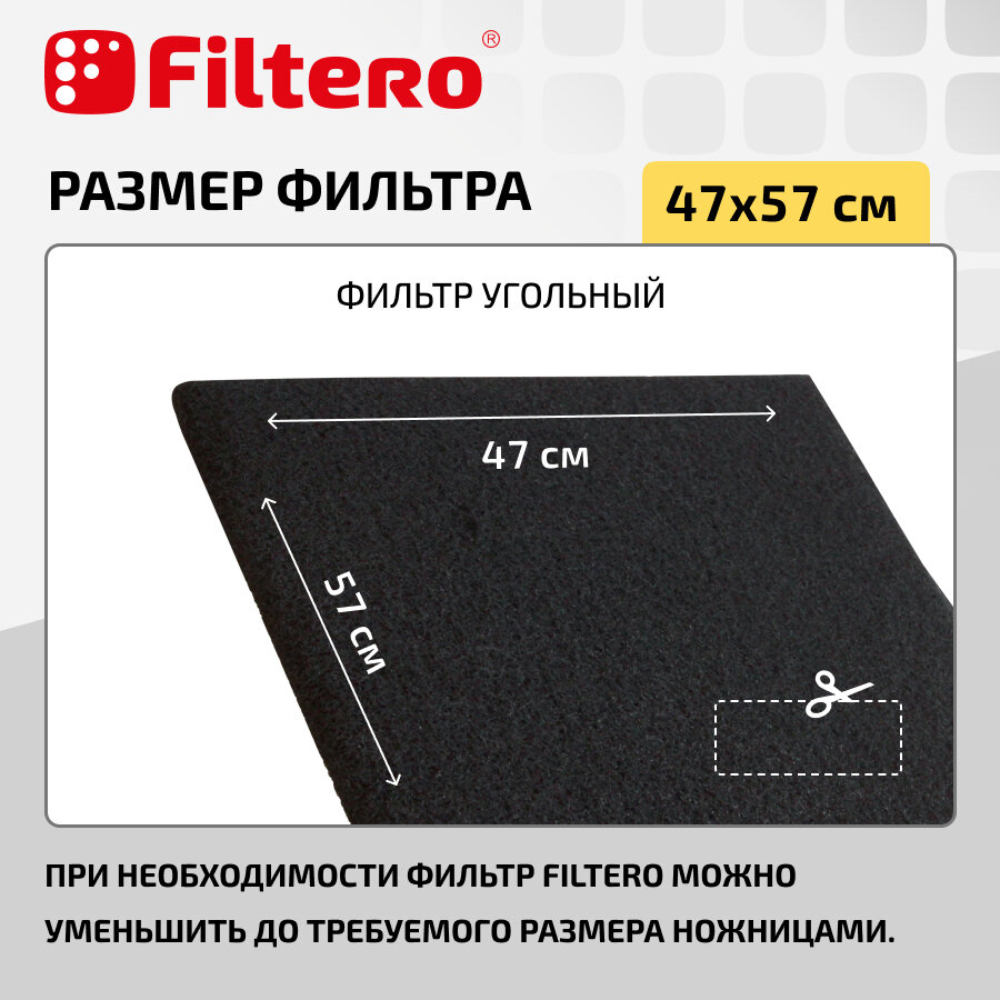 Filtero FTR 04 комбинированный фильтр (угольный и жиропоглощающий) для кухонных вытяжек, 57х47см информация: