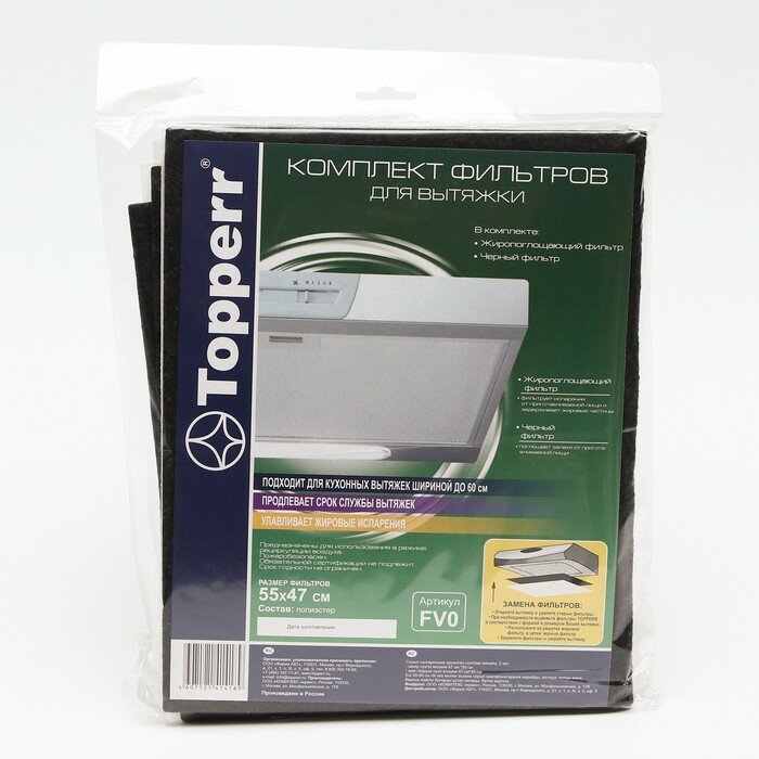 Комплект фильтров Topperr для вытяжки, черный, жиропоглощающий информация: