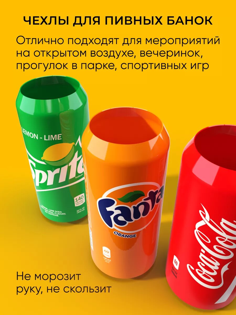 Чехол на банку пива силиконовый кока-кола фанта спрайт 3 шт 710 ₽