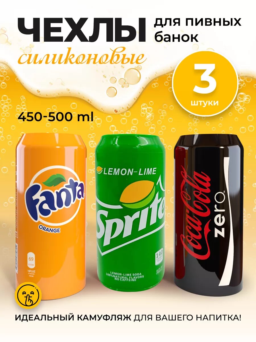 10 цен на Чехол на банку пива силиконовый кока-кола фанта спрайт 3 шт