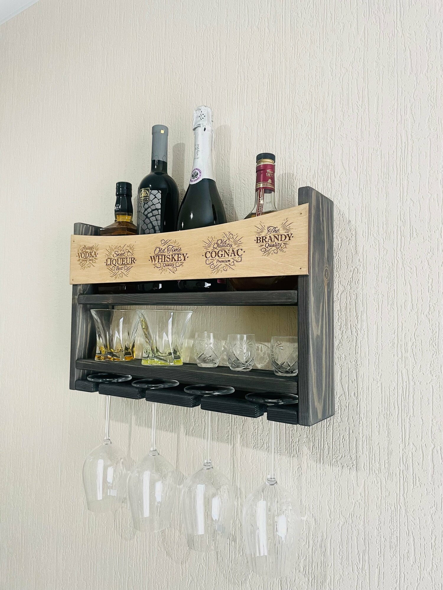 Настенная полка для бутылок вина и бокалов с гравировкой информация: