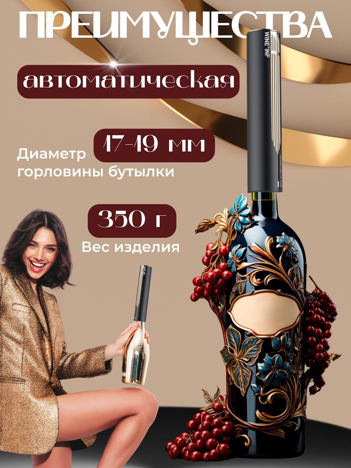 10 цен на Штопор для вина электрический, чёрно-серебряный