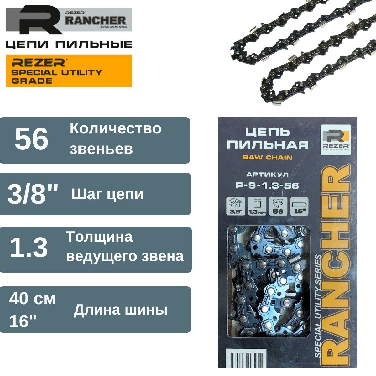 Цепь для бензопилы Rezer PS-9-1.3-56, 16", 3/8", 1.3 мм, 56 звеньев, Partner/Champion137/142 4242679