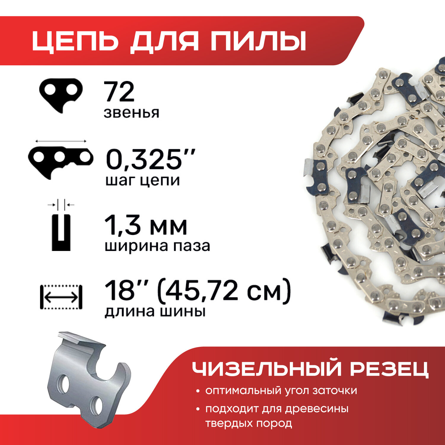 10 цен на Цепь для бензопилы / цепь для электропилы / цепь пильная NUMBER ONE N1CP (суперзуб), паз 1.3 мм, 72 звеньев, шаг 0.325, шина 18" (45.72 см)