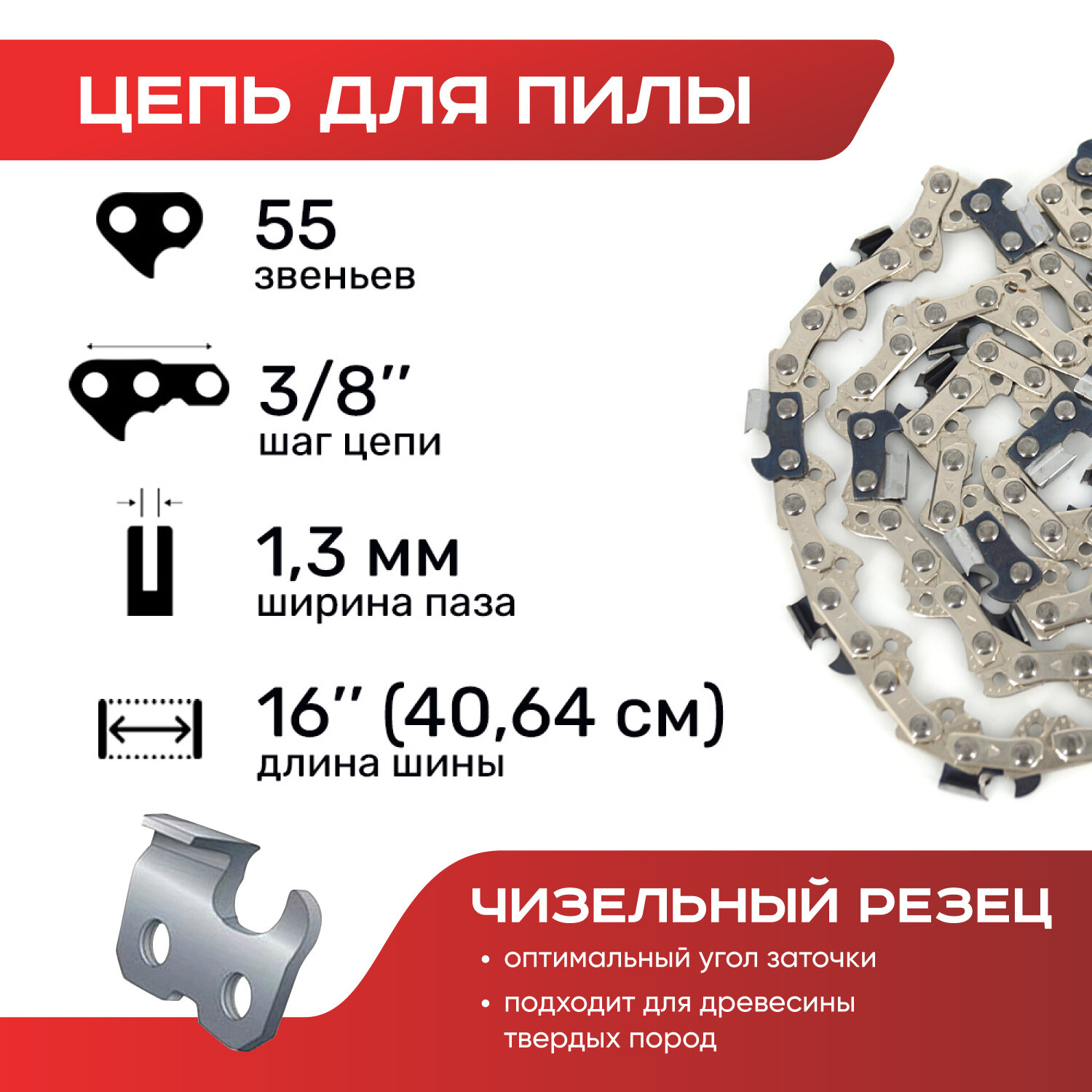 Отзывы на Цепь для бензопилы / цепь для электропилы / цепь пильная NUMBER ONE (супер зуб) N1CP, паз 1.3 мм, 55 звеньев, шаг 3/8, шина 16" (40.64см)