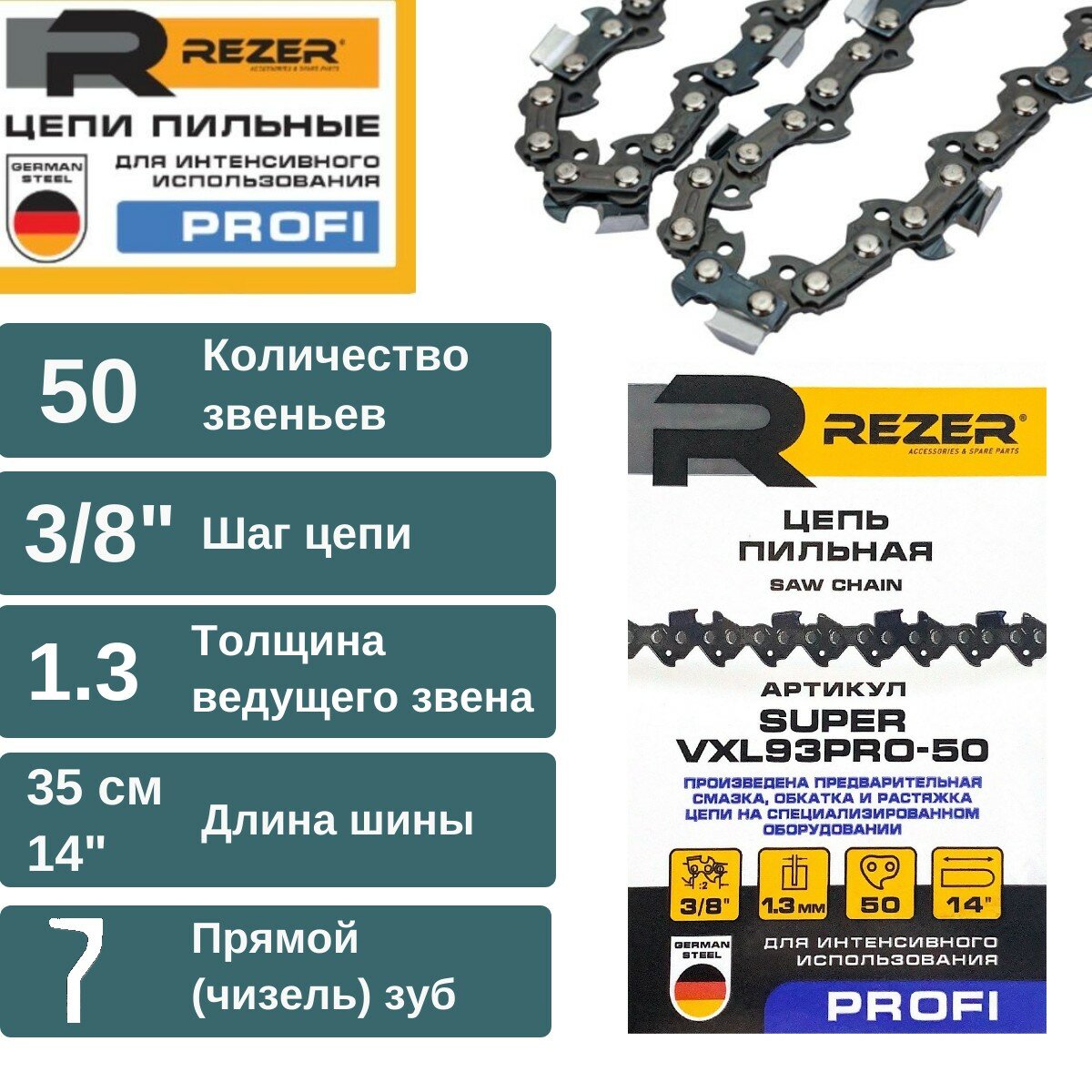 Цепь пильная для пилы STIHL (Штиль) MS 170 / 180 / 210 / 230 / 250, 50 звеньев, Длина шины - 14"/35см, Шаг цепи - 3/8", Толщина ведущего звена- 1,3 мм, Супер Зуб - Чизель, REZER PROFI информация: