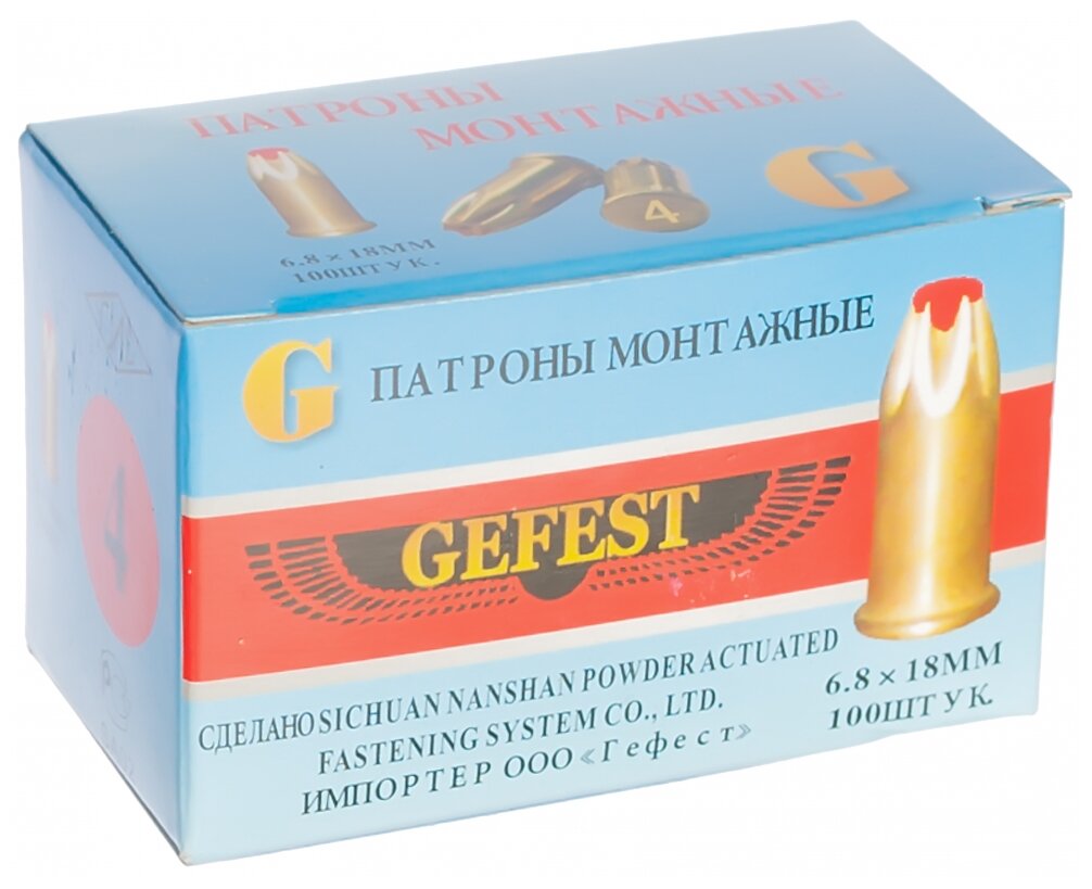 | Дополнительная информация | длина патрона 18 мм, в комплекте 100 шт; для пистолетов Gefest: GFT2, GFT3, GFT603, GFT5 |