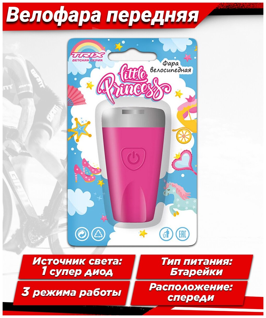 10 цен на Trix Фара Little Princess детская, передняя, 1 супер яркий белый диод, линза,3 режима, силикон, розовая