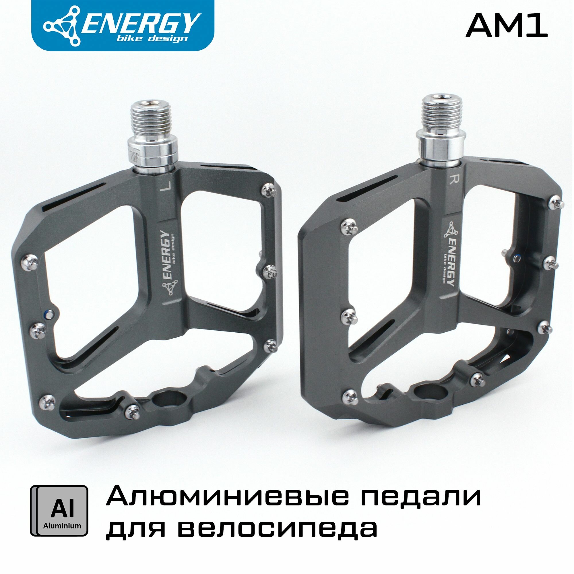 Педали для велосипеда Energy AM1, 14 шипов, алюминиевые, серые информация: