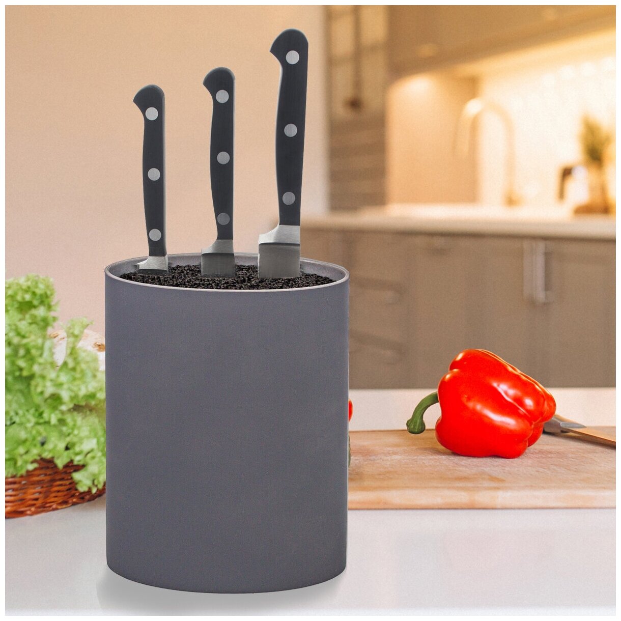 Подставка для ножей с наполнителем WILKER 22х16 см овальная серая информация: