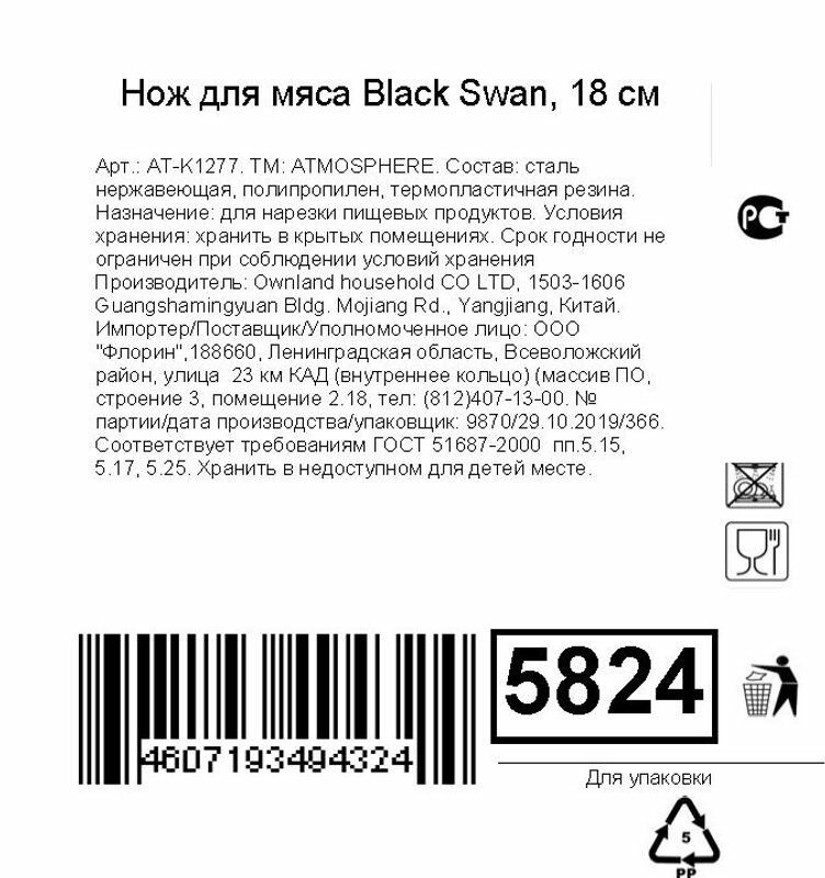 Нож для мяса Black Swan, 18 см информация: