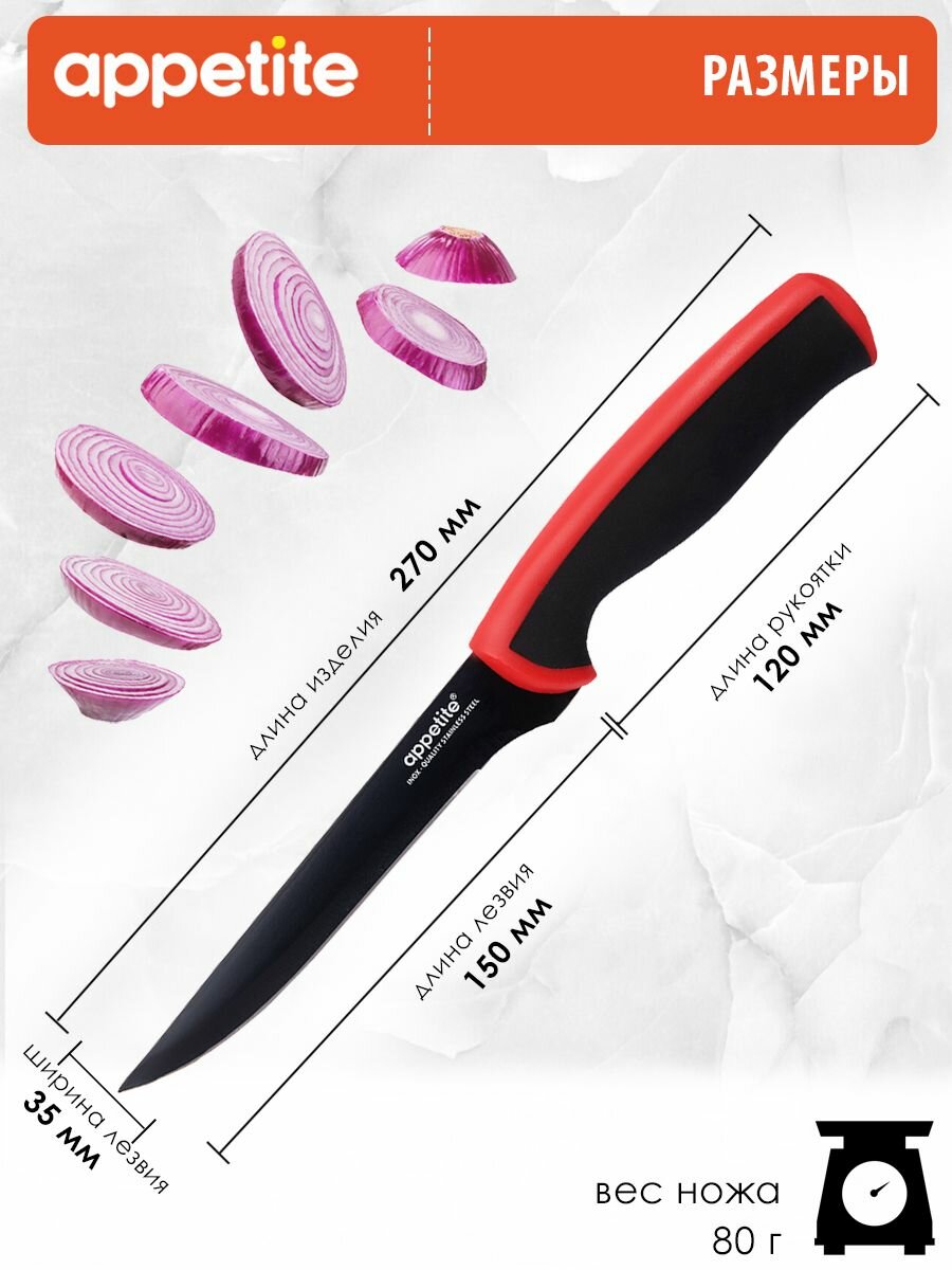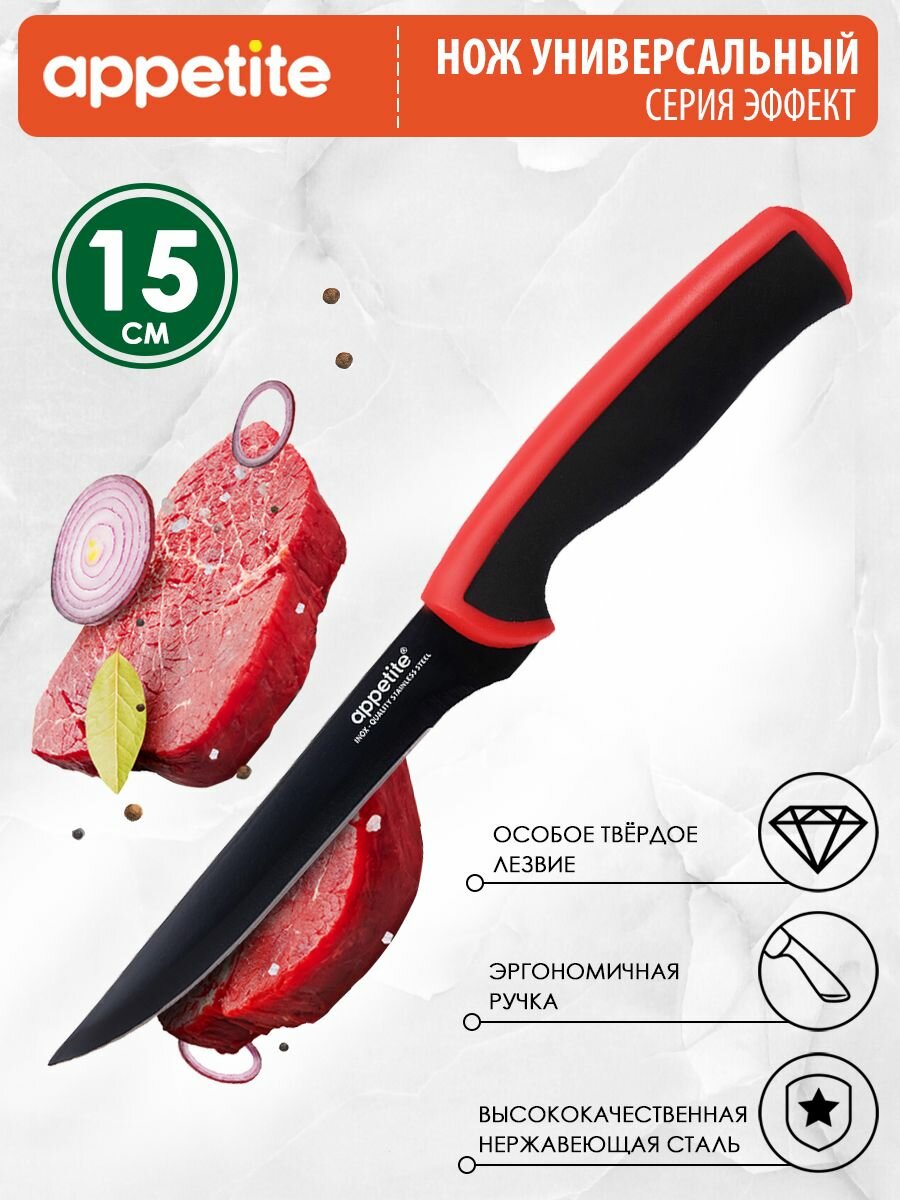 10 цен на Нож из нержавеющей стали Эффект универсальный 15см красный ТМ Appetite