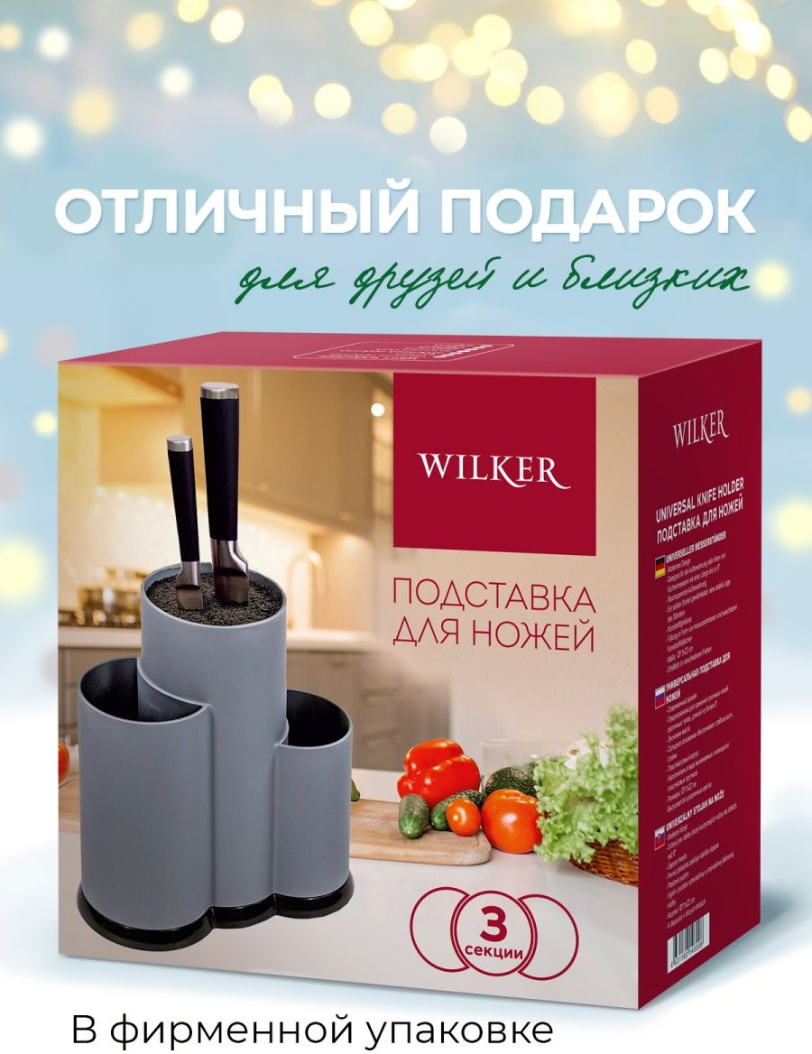 Подставка для ножей и столовых приборов WILKER 23х22х11 см тройная серая