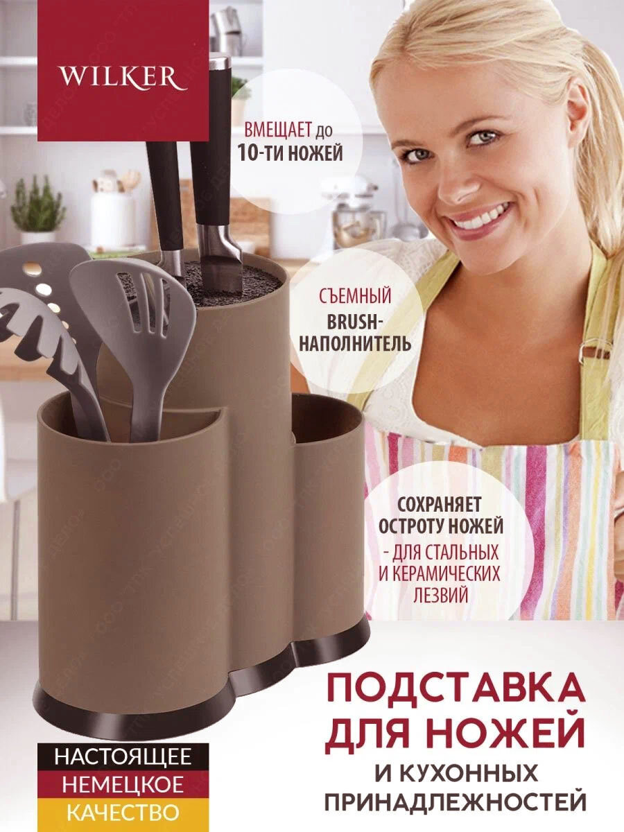 Отзывы на Подставка для ножей и столовых приборов WILKER 23х22х11 см тройная коричневая